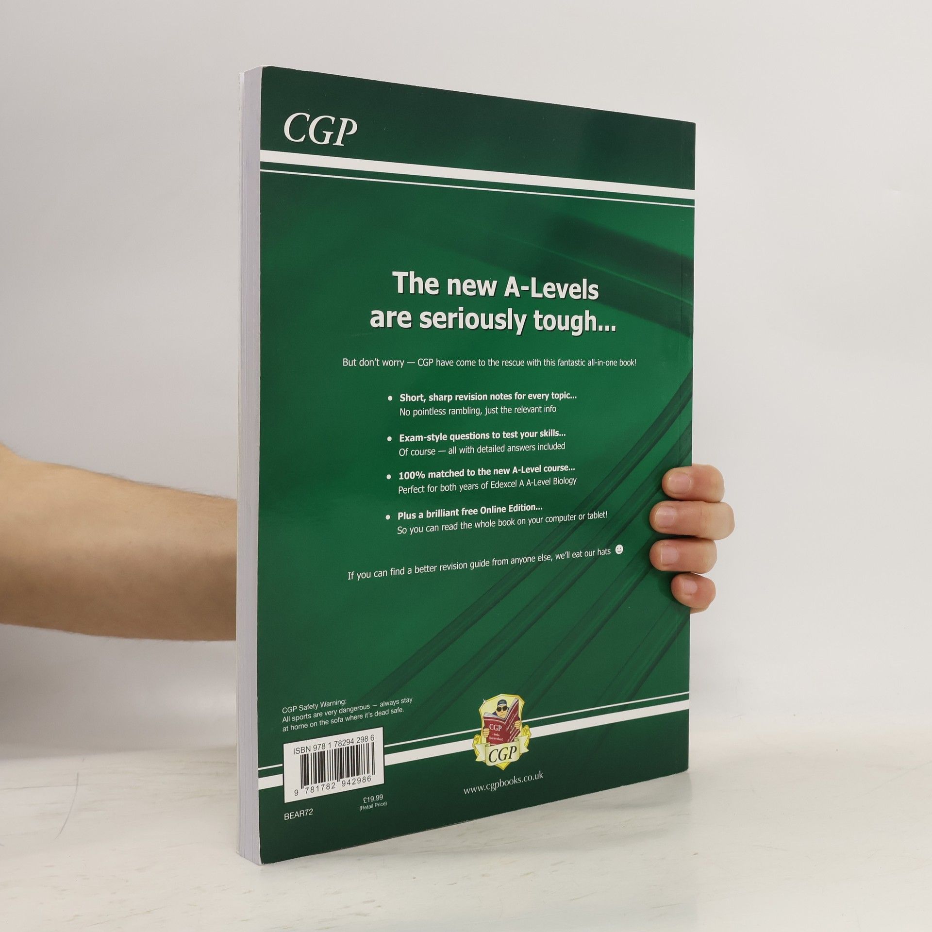 Exam Edexcel Level & A-Level Biology First September 2015 First June 2017 This clear, concise Complete Revision & Practice book from CGP is a perfect way to prepare for the Edexcel A A-Level Biology exams - it covers every topic from both years of the course. It’s fully up-to-date for the new exam specifications for 2015 and beyond, with straightforward explanations, helpful examples and full-colour diagrams throughout. Practice questions and exam-style questions (with answers) are included for every topic, and the book is rounded off with a section of in-depth advice on Practical Skills. And finally, a free Online Edition of the whole book is included - just use the code printed inside the book to access it on your PC, Mac or tablet!