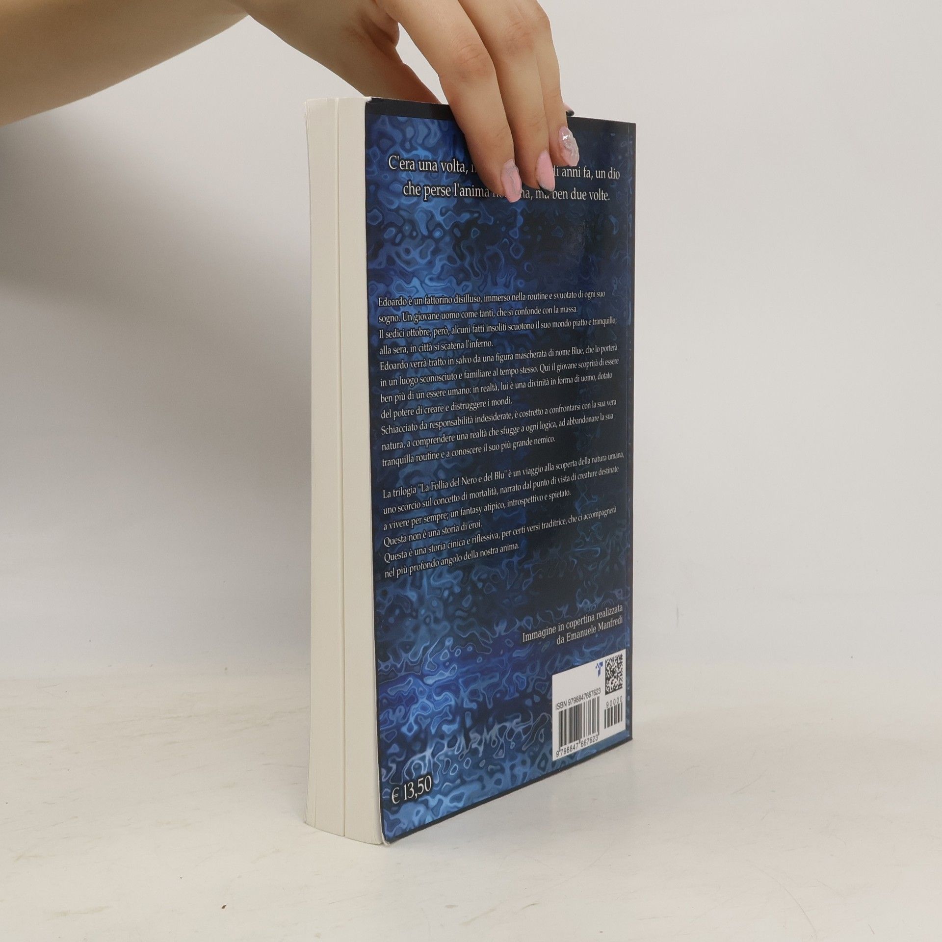"C'era una volta, milioni e milioni di anni fa, un dio che perse l'anima non una, ma ben due volte." Edoardo è un fattorino deluso dalla vita, ormai immerso nella routine, svuotato da ogni suo sogno. La sua vita però viene stravolta in un solo giorno pieno di stranezze. Il mondo, la vita e tutto ciò che sembrava semplice e scontato non saranno più gli stessi per Edoardo, una volta che avrà raggiunto la maestosa Città dei Sogni. Schiacciato da responsabilità indesiderate, è costretto a confrontarsi con la sua vera natura, a comprendere una realtà che sfugge a ogni logica, ad abbandonare la sua tranquilla routine e a conoscere il suo più grande nemico. Madein è il primo volume de La Follia del Nero e del Blu: una trilogia fantasy cinica e riflessiva, per certi versi traditrice, che vi accompagnerà in una lenta discesa nei più sordidi recessi della natura umana.