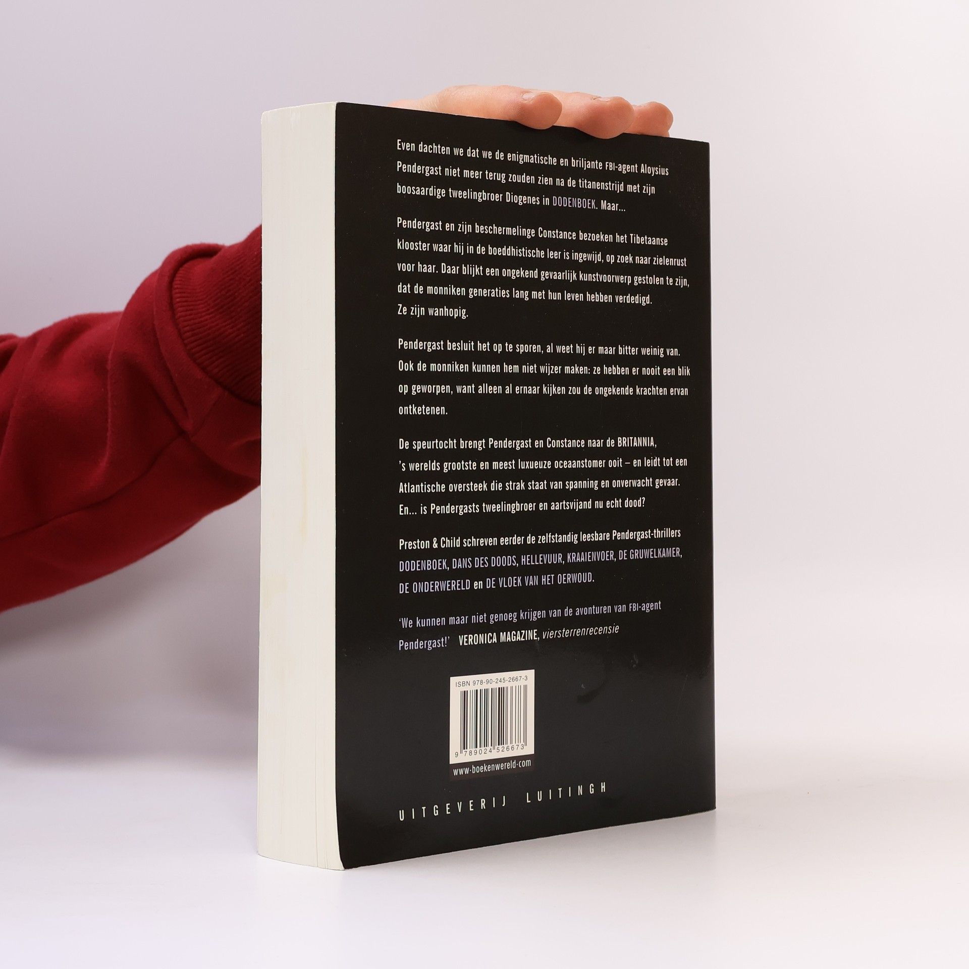 Even dachten we dat we de enigmatische en briljante FBI-agent Aloysius Pendergast niet meer terug zouden zien na de titanenstrijd met zijn boosaardige tweelingbroer Diogenes in DODENBOEK. Maar... Pendergast en zijn beschermelinge Constance bezoeken het Tibetaanse klooster waar hij in de boeddhistische leer is ingewijd, op zoek naar zielenrust voor haar. Daar blijkt een ongekend gevaarlijk kunstvoorwerp gestolen te zijn, dat de monniken generaties lang met hun leven hebben verdedigd. Ze zijn wanhopig. Pendergast besluit het op te sporen, al weet hij er maar bitter weinig van.Ook de monniken kunnen hem niet wijzer maken: ze heben er nooit een blik op geworpen, want alleen al ernaar kijken zou de ongekende krachten ervan ontketenen. De speuroch brengt Pendergast en Constance naar de BRITANNIA, 's werelds grootste en meest luxueuze oceaanstomer ooit - en leidt tot een Atlantische oversteeek die strak staat van spanning en onverwacht gevaar. En... is Pendergasts tweelingbroer en aartsvijand nu echt dood?