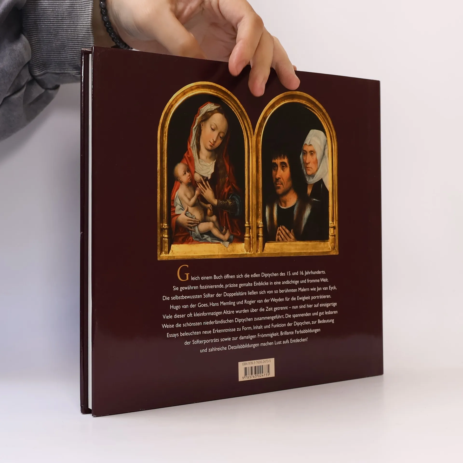 Gemalte Ewigkeit. Gleich einem Buch öffnen sich die edlen Diptychen des 15. und 16. Jahrhunderts. In der Mitte mit einem Scharnier verbunden, lassen sich die zwei Tafeln aufklappen und gewähren faszinierende, präzise gemalte Einblicke in eine andere, andächtige und fromme Welt. Die selbstbewussten Stifter der Doppelaltäre ließen sich von so berühmten Malern wie Jan van Eyck, Rogier van der Weyden, Hans Memling, Hugo van der Goes u. v. a. für die Ewigkeit porträtieren. Viele dieser oft kleinformatigen Altäre wurden über die Zeit getrennt – nun sind hier auf einzigartige Weise 40 der schönsten niederländischen Diptychen zusammengeführt. - Die bedeutendsten und schönsten Diptychen von Jan van Eyck, Hans Memling, Rogier van der Weyden, Hugo van der Goes u. v. a. - 40 niederländische Doppelaltarbilder des 15. und 16. Jahrhunderts in einer weltweit einmaligen Zusammenführung