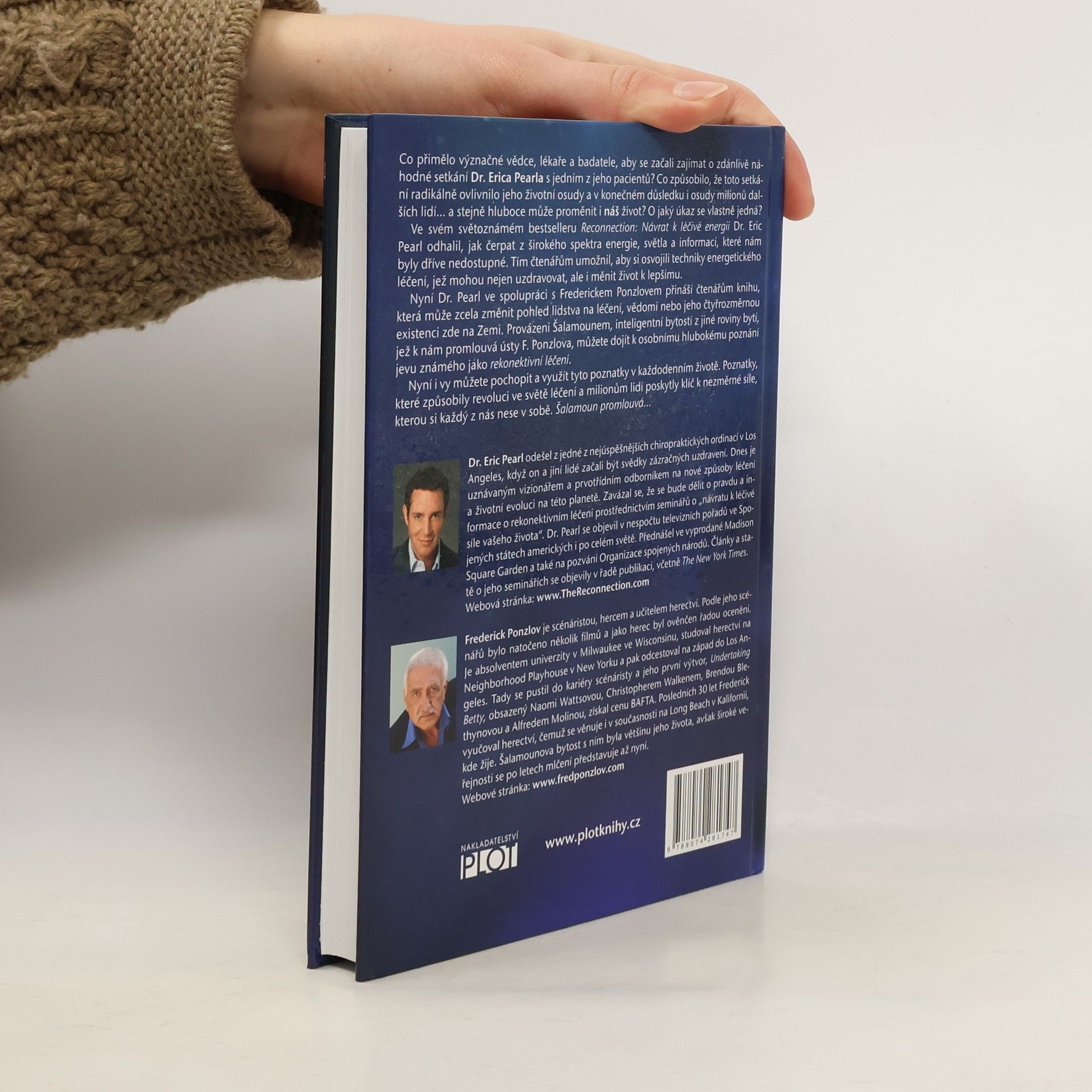 Co přimělo význačné vědce, lékaře a badatele, aby se začali zajímat o zdánlivě náhodné setkání Dr. Erica Pearla s jedním z jeho pacientů? Co způsobilo, že toto setkání radikálně ovlivnilo jeho životní osudy a v konečném důsledku i osudy milionů dalších lidí… a stejně hluboce může proměnit i náš život? O jaký úkaz se vlastně jedná? Ve svém světoznámém bestselleru Reconnection: Návrat k léčivé energii Dr. Eric Pearl odhalil, jak čerpat z širokého spektra energie, světla a informací, které nám byly dříve nedostupné. Tím čtenářům umožnil, aby si osvojili techniky energetického léčení, jež mohou nejen uzdravovat, ale i měnit život k lepšímu. Nyní Dr. Pearl ve spolupráci s Frederickem Ponzlovem přináší čtenářům knihu, která může zcela změnit pohled lidstva na léčení, vědomí nebo jeho čtyřrozměrnou existenci zde na Zemi. Provázeni Šalamounem, inteligentní bytostí z jiné roviny bytí, jež k nám promlouvá ústy F. Ponzlova, můžete dojít k osobnímu hlubokému poznání jevu známého jako rekonektivní léčení. Nyní i vy můžete pochopit a využít tyto poznatky v každodenním životě. Poznatky, které způsobily revoluci ve světě léčení a milionům lidí poskytly klíč k nezměrné síle, kterou si každý z nás nese v sobě. Šalamoun promlouvá…