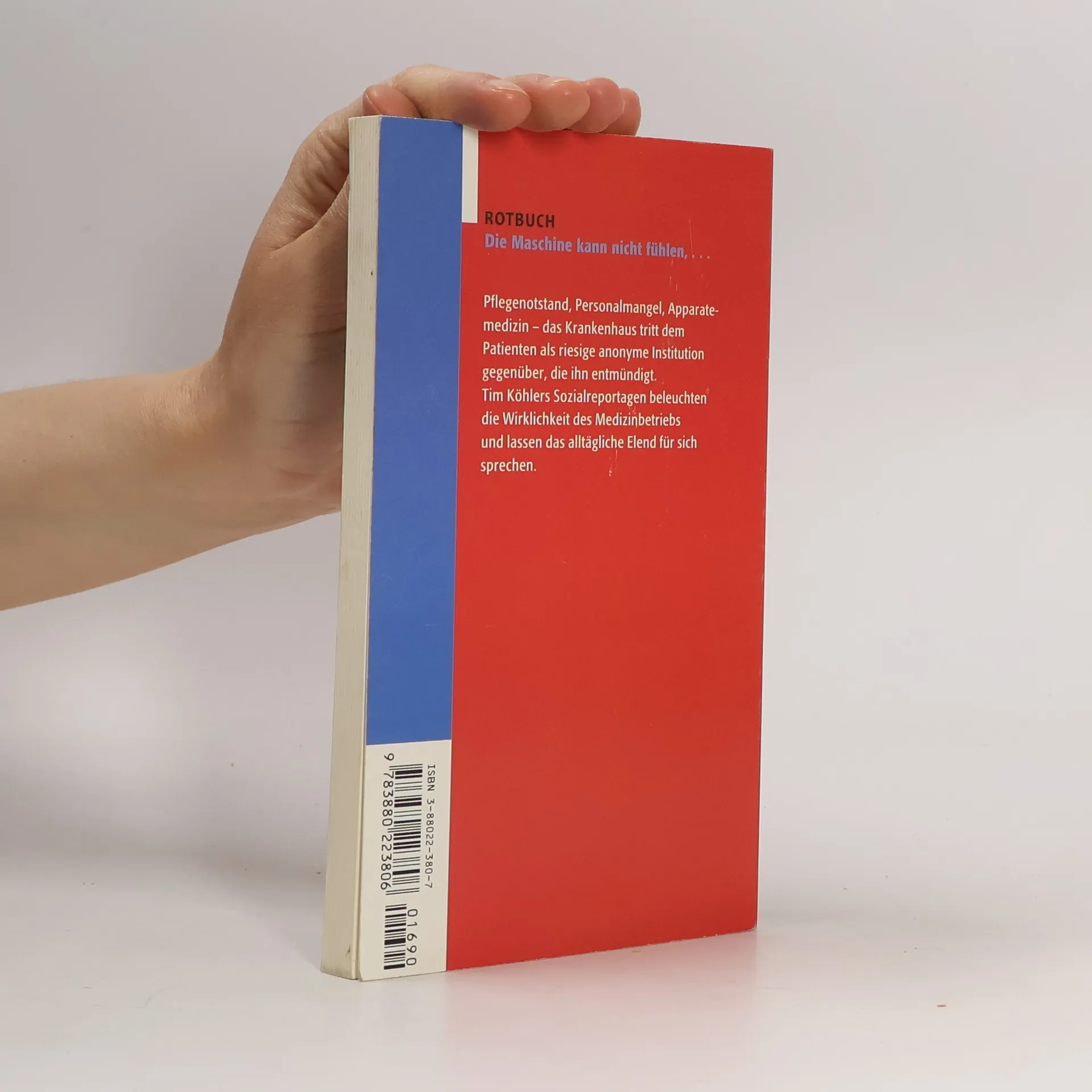Rotbuch-Taschenbücher - 1059: Die Maschine kann nicht fühlen, ob der Mensch atmen will. Reportagen aus dem Krankenhaus., Tim Köhler