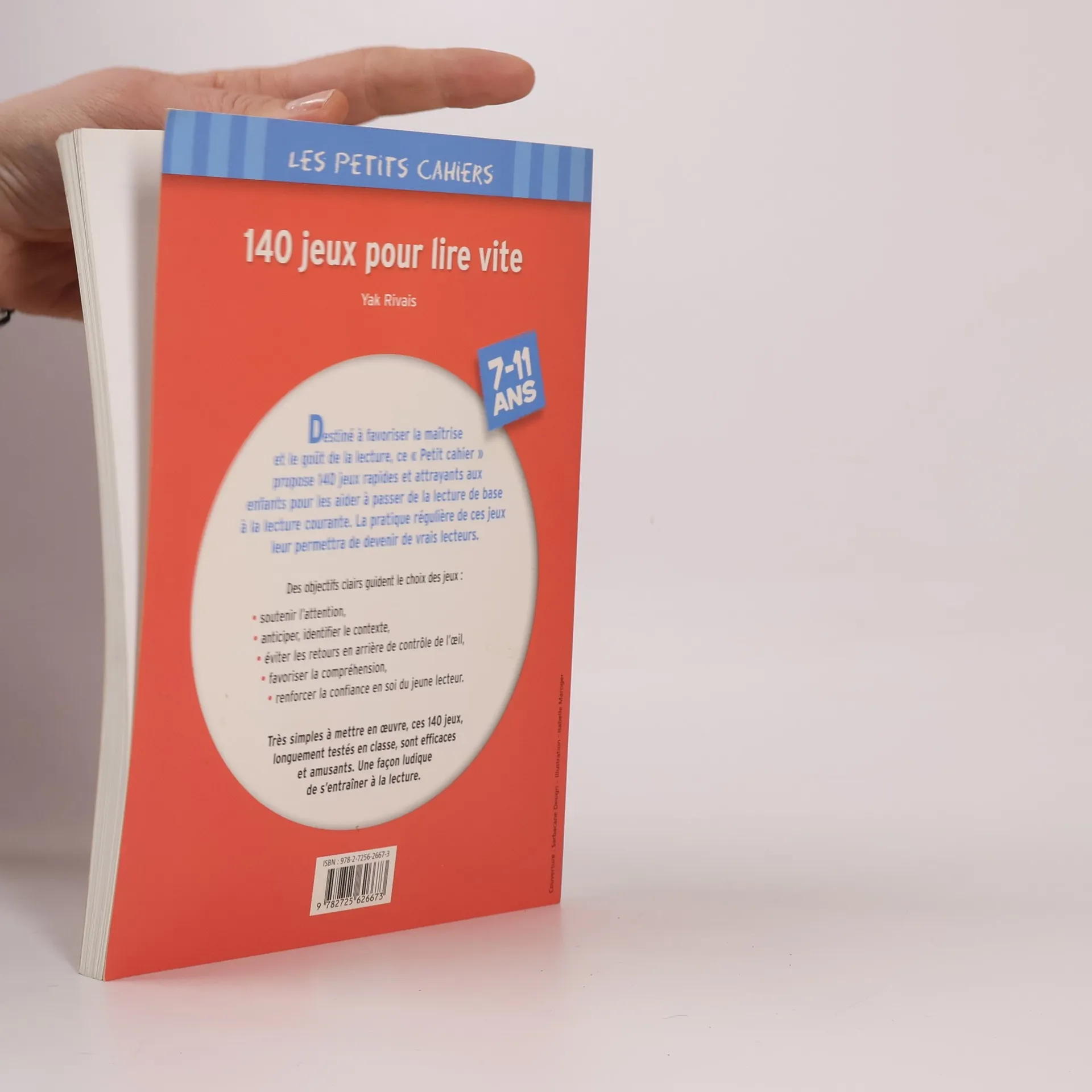 Quatrième de couverture : "Destiné à favoriser la maîtrise et le goût de la lecture, ce " Petit cahier " propose 140 jeux rapides et attrayants aux enfants pour les aider à passer de la lecture de base à la lecture courante. La pratique régulière de ces jeux leur permettra de devenir de vrais lecteurs. Des objectifs clairs guident le choix des jeux : soutenir l'attention, anticiper, identifier le contexte, éviter les retours en arrière de contrôle de l'œil, favoriser la compréhension, renforcer la confiance en soi du jeune lecteur. Très simples à mettre en oeuvre, ces 140 jeux, longuement testés en classe, sont efficaces et amusants. Une façon ludique de s'entraîner à la lecture."