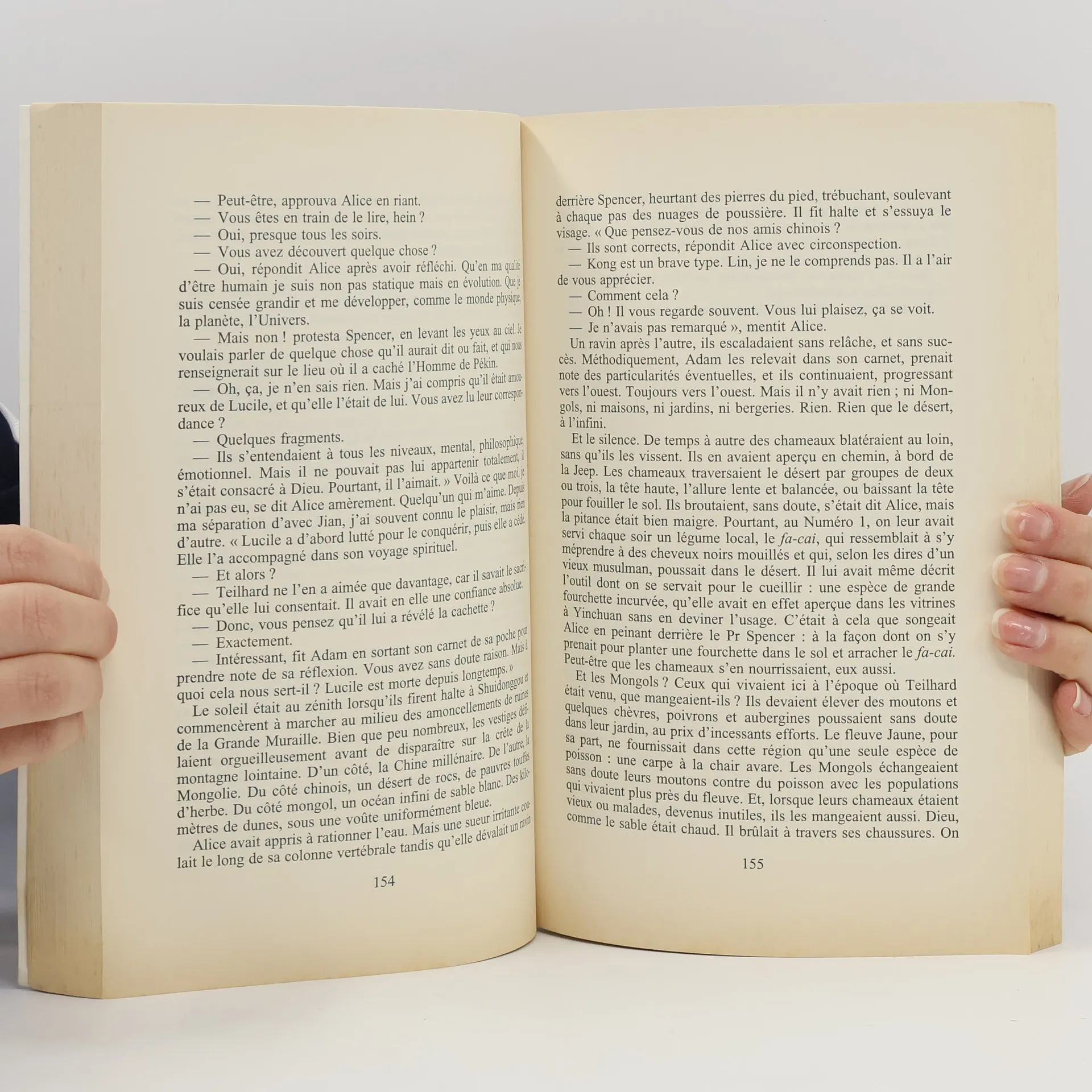 Alice Mannegan travaille à Pékin, comme interprète indépendante. Tout la fascine, en Chine : la langue, qu'elle parle à merveille, le mode de vie, les traditions... et les hommes. Son destin va prendre un tour nouveau lorsque le paléontologue Adam Spencer l'engage afin d'accompagner une expédition archéologique qui a pour but de retrouver les ossements, mystérieusement disparus depuis 1941, de l'Homme de Pékin. Deux scientifiques chinois, Kong et Lin, sont chargés à la fois de les surveiller et de partager le fruit de leurs recherches. Cette aventure aux multiples péripéties les entraînera, dans les splendides paysages désertiques de la Mongolie Intérieure, sur les traces de Pierre Teilhard de Chardin. Alice, la femme " de l'extérieur " marquée du sceau troublant de l'interdit, y trouvera-t-elle l'amour auquel elle aspire ? Lin parviendra-t-il à se libérer de son passé ? Et, au bout du voyage, l'Homme de Pékin sera-t-il au rendez-vous ? Un roman passionnant, chargé de mystère et de sensualité, où la frontière entre fiction et réalité est souvent indiscernable.