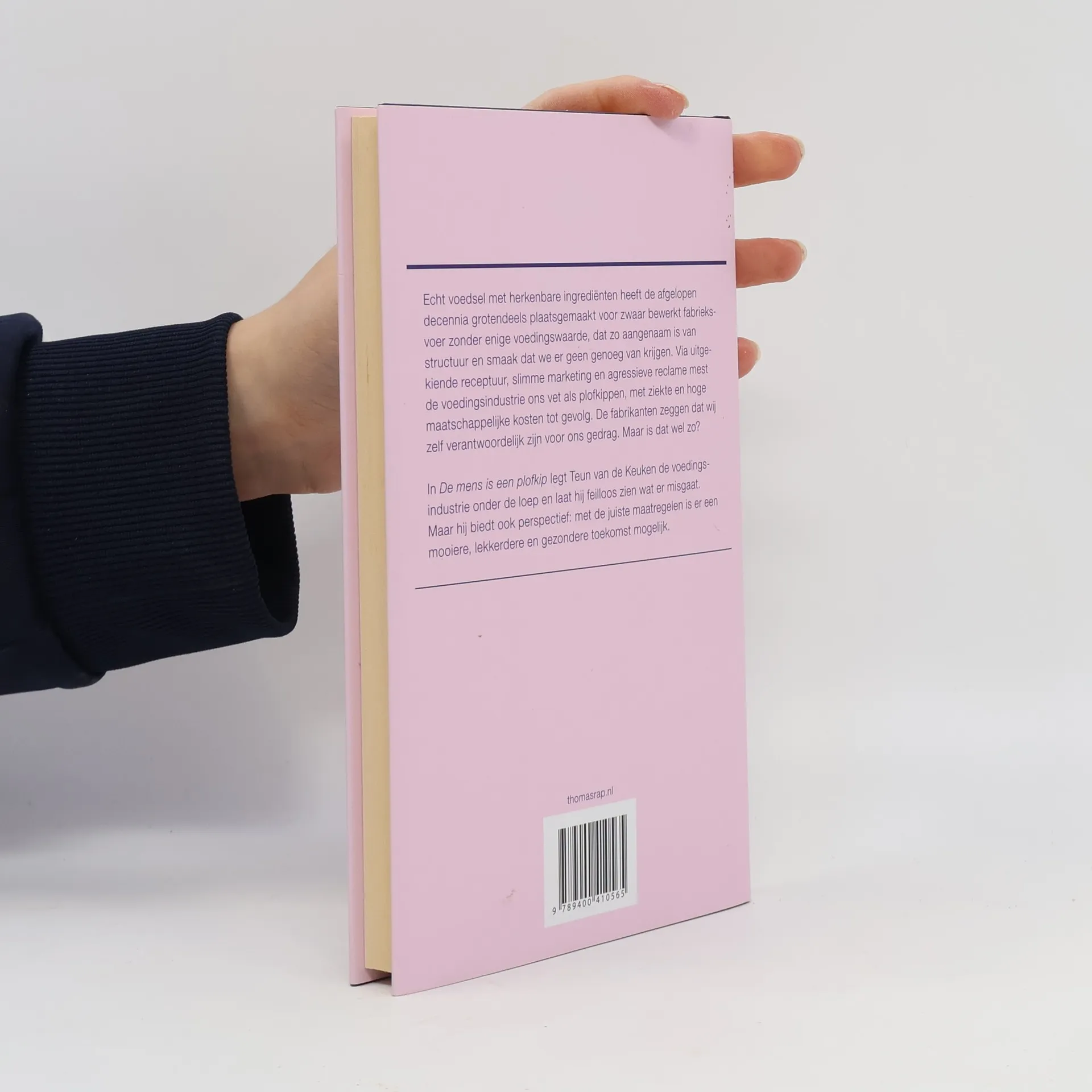 Echt voedsel met herkenbare ingrediënten heeft de afgelopen decennia grotendeels plaatsgemaakt voor zwaar bewerkt fabrieksvoer zonder enige voedingswaarde, dat zo aangenaam is van structuur en smaak dat we er geen genoeg van krijgen. Via uitgekiende receptuur, slimme marketing en agressieve reclame mest de voedingsindustrie ons vet als plofkippen, met ziekte en hoge maatschappelijke kosten tot gevolg. De fabrikanten zeggen dat wij zelf verantwoordelijk zijn voor ons gedrag. Maar is dat wel zo?0In 'De mens is een plofkip' legt Teun van de Keuken de voedingsindustrie onder de loep en laat hij feilloos zien wat er misgaat. Maar hij biedt ook perspectief: met de juiste maatregelen is er een mooiere, lekkerdere en gezondere toekomst mogelijk. 00Na jarenlang het gezicht te zijn geweest van Keuringsdienst van waarde is Van de Keuken de ideale afzender voor dit prikkelende en noodzakelijke essay.