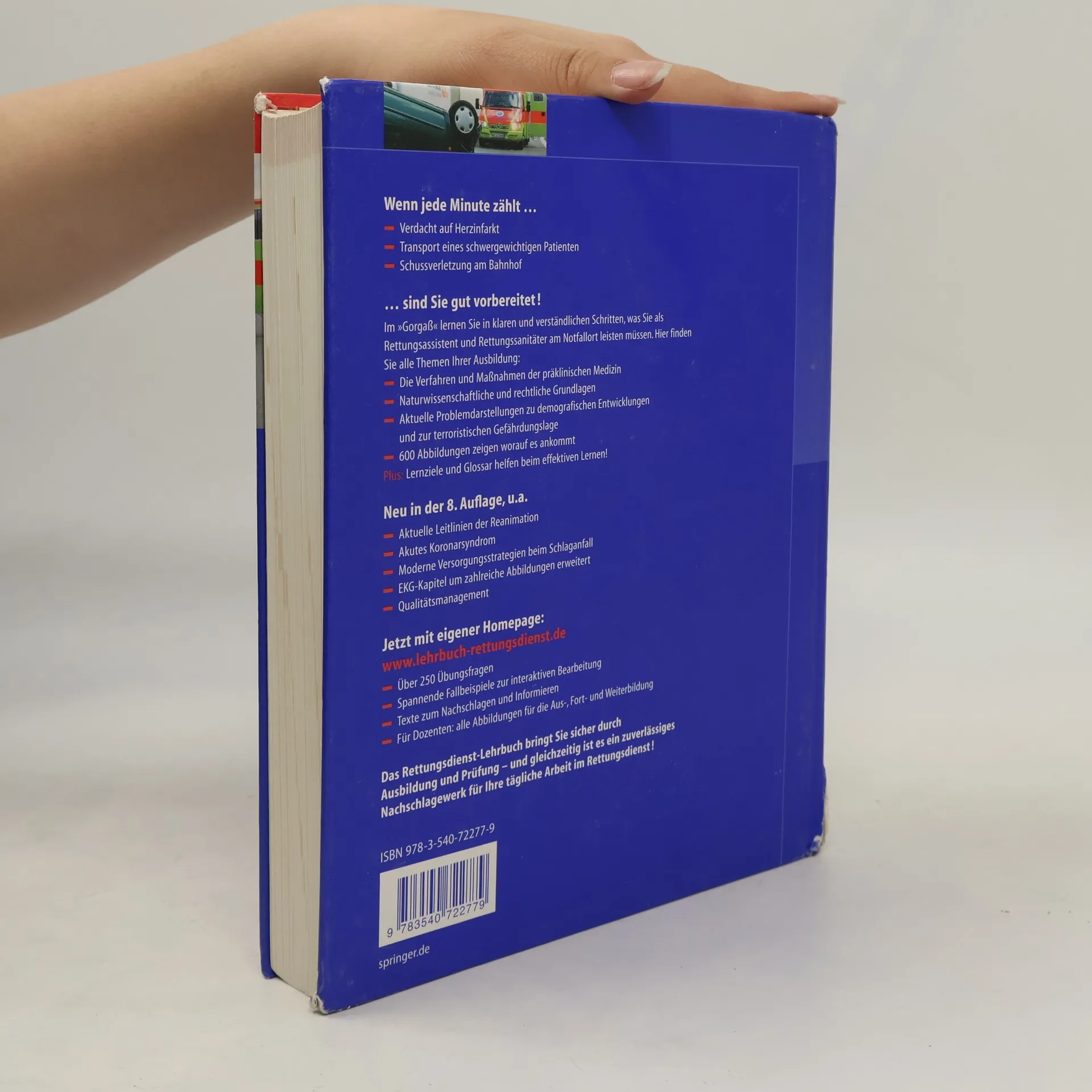 Der Klassiker in der Aus- und Fortbildung im Rettungsdienst in neuer Auflage!Von den medizinischen Grundlagen bis zur Einsatztaktik bietet der Gorgass" alles, was in der Ausbildung und im Rettungseinsatz gefordert Verstandlich - didaktisch aufbereitet - und aus einem Guss. Aktuelle Kapitel spiegeln die demografische Entwicklung, den medizinischen Fortschritt und die terroristische Gefahrdungslage - Der alte Mensch in der Notfallmedizin; - Patienten mit implantierten oder korpernahen Aggregaten und Geraten; - Explosionstrauma - Schussverletzungen; Strahlenunfall - Verletzungen durch Nervengifte, Hautkampfstoffe und Milzbranderkrankungen.Gezielte Lernhilfen unterstutzen das effektive - Lernzielformulierungen; - Abgestufte Lernziele fur Rettungsassistenten und Rettungssanitatern; - Glossar zum Nachschlagen von Fachbegriffen.Neu in der 8. - Nach den Leitlinien Reanimation - Akutes Koronarsyndrom - Schlaganfall; - Erweiterung des EKG-Kapitels mit vielen Abbildungen - Der schwergewichtige Patient - Qualitatsmanagement im Rettungsdienst Homepage (www.lehrbuch-rettungsdienst.de) mit uber 150 Ubungsfragen, Fallbeispielen zum Lernen alle Abbildungen fur die Aus-, Fort- und Weiterbildung.Das bewahrte und zuverlassige Lehrbuch bringt Sie sicher durch die Ausbildung! "