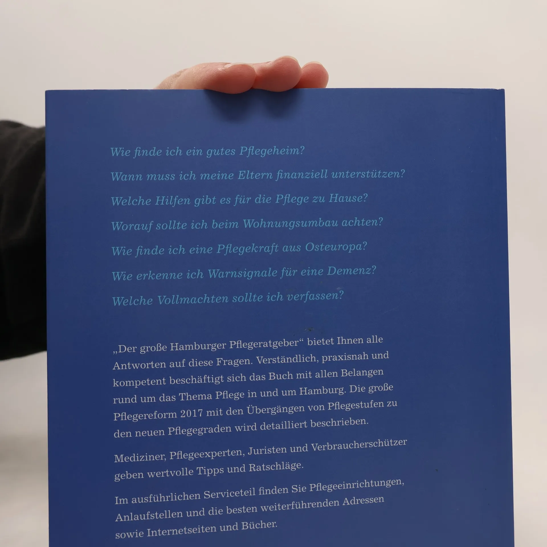 Wie finde ich ein gutes Pflegeheim? Wann muss ich meine Eltern finanziell unterstützen? Welche Hilfen gibt es für die Pflege zu Hause? Worauf sollte ich beim Wohnungsumbau achten? Wie finde ich eine Pflegekraft aus Osteuropa? Wie erkenne ich Warnsignale für eine Demenz? Welche Vollmachten sollte ich verfassen? „Der große Hamburger Pflegeratgeber“ bietet Ihnen alle Antworten auf diese Fragen. Verständlich, praxisnah und kompetent beschäftigt sich das Buch mit allen Belangen rund um das Thema Pflege in und um Hamburg. Die große Pflegereform 2017 mit den Übergängen von Pflegestufen zu den neuen Pflegegraden wird detailliert beschrieben. Mediziner, Pflegeexperten, Juristen und Verbraucherschützer geben wertvolle Tipps und Ratschläge. Im ausführlichen Serviceteil finden Sie Pflegeeinrichtungen, Anlaufstellen und die besten weiterführenden Adressen sowie Internetseiten und Bücher.