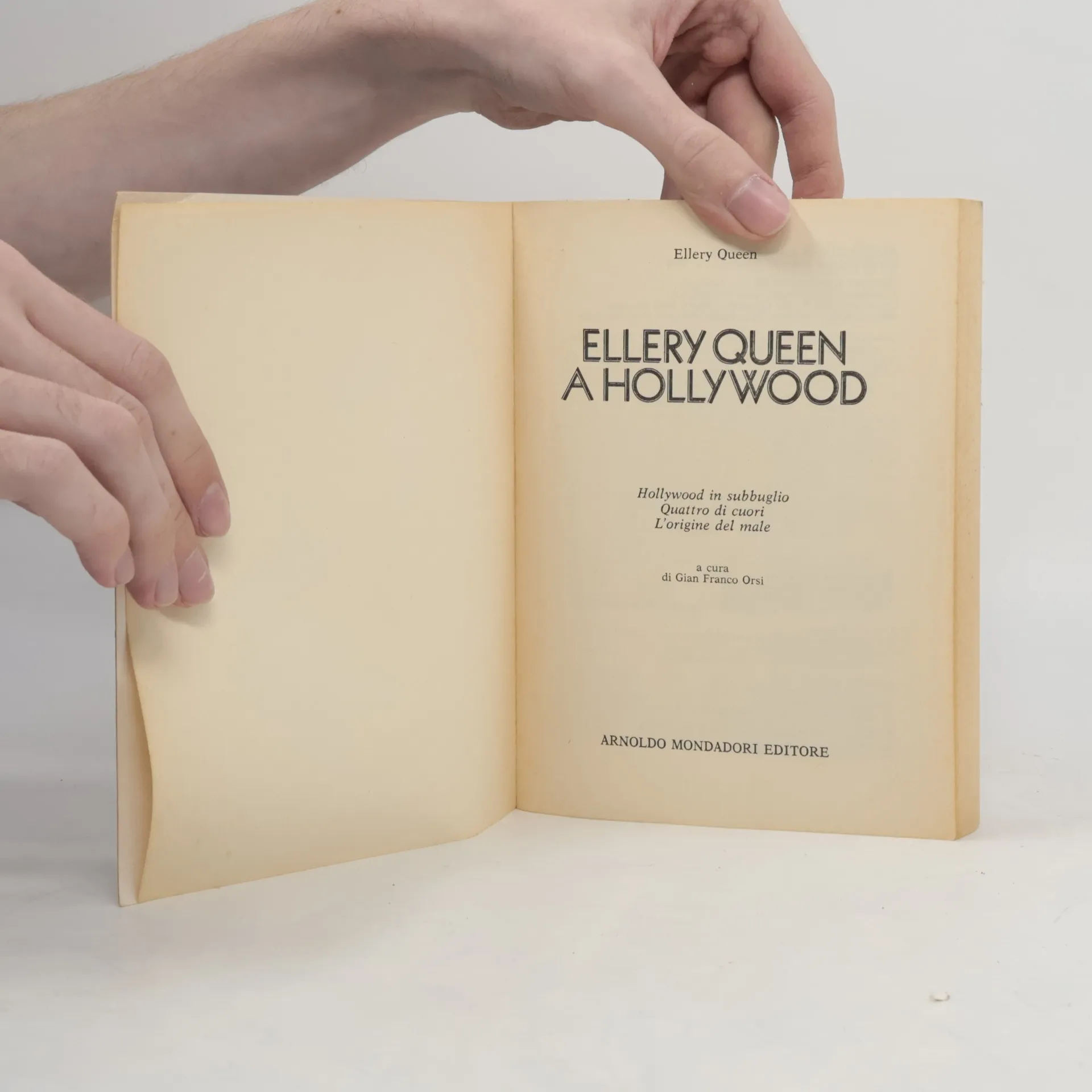 Ellery Queen è furibondo. Gli hanno detto di partire subito da New York per Hollywood. E lui è partito. Non ha fatto in tempo ad arrivare alla mecca del cinema, che gli hanno detto di presentarsi subito al lavoro. E lui si è precipitato agli studi, ma il grande produttore si è rilevato troppo occupato per riceverlo. Sono passate alcune settimane, ed Ellery sta ancora aspettando di mettersi alla macchina per scrivere. Hollywood non gli è amica? Ma se il mondo del cinema sembra voltargli le spalle, quello del delitto ha bisogno di lui. A Hollywood ci sono tre casi che aspettano solo di essere risolti dal principe degli investigatori. Caso numero uno: il misterioso assassinio di un finanziere (Hollywood in subbuglio). Caso numero due: un clamoroso crimine nella dorata casta dei divi (Quattro di cuori). Caso numero tre: la strana morte di un ricco gioielliere (L'origine del male).