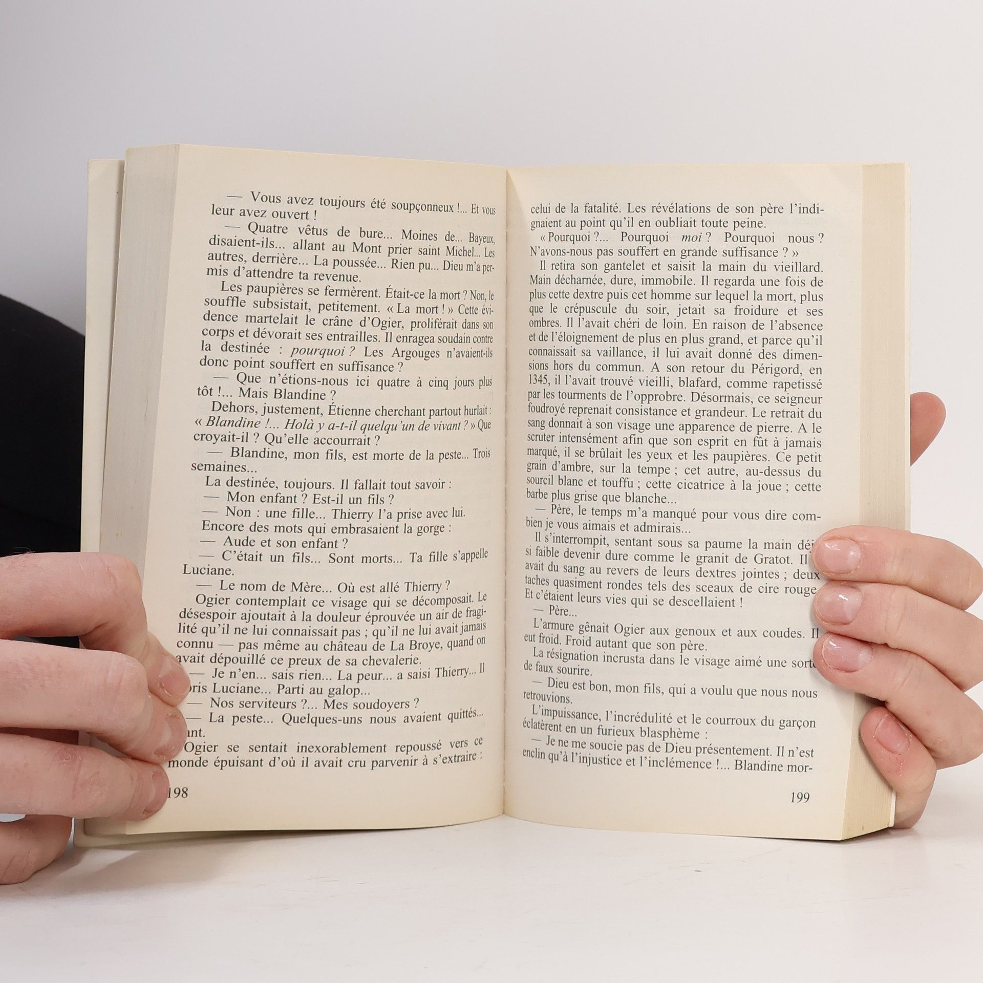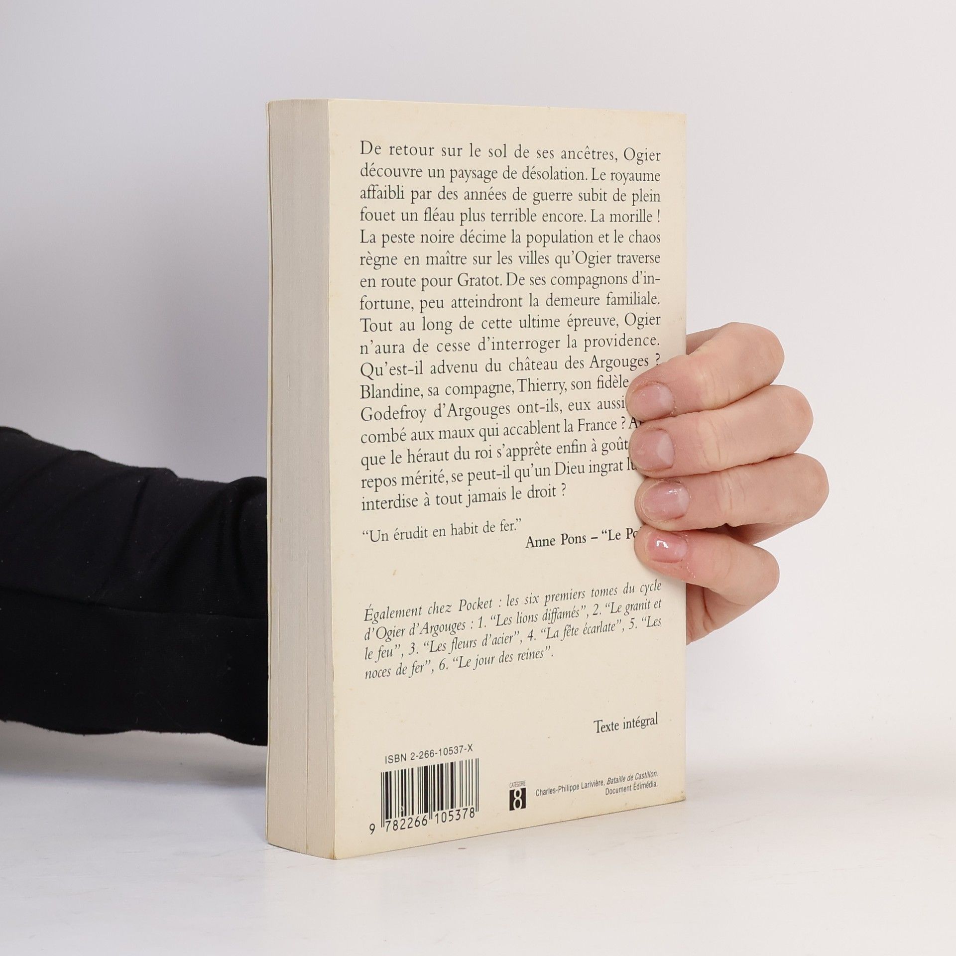 Vendredi 27 juillet 1347. Philippe VI, à la tête d'une puissante armée, parvient devant Calais que les Anglais assiègent depuis un an. Afin de les impressionner avant de leur livrer bataille, le roi enjoint à son champion, Ogier d'Argouges, d'entraîner les manants du Tournaisis à la conquête de la tour de Sangatte. Alors que cet objectif sans importance stratégique est sur le point d'être pris, un Anglais surgit devant Ogier. Ils s'affrontent à l'épée en un combat inégal. En effet, pour se mouvoir aisément, le Français a renoncé au port de l'armure. Son adversaire est fervêtu. Ce terrible Goddon est Renaud de Cobham. Sans l'efficace intervention de Gauthier de Masny, Ogier, grièvement blessé, serait exécuté. Emmené en Angleterre, soigné par Odile et Ethelinde de Winslow, le Français reprend des forces et s'enfuit. Un archer, Jack Shirton, lui vient en aide. Dès lors, ils n'ont qu'un dessein : rencontrer Hugh Calveley auquel, naguère, Ogier a sauvé la vie. Accompagnés de Griselda et d'Elisabeth qu'ils ont délivrées d'une auberge interlope, ils cheminent vers Ashby de la Zouche où les victoires d'Edouard III vont être célébrées par de grandes joutes. Ogier y retrouve deux personnes chères à son coeur : son oncle Guillaume de Rechignac, capturé au siège d'Auberoche, et Tancrède, sa belle cousine. Ogier délivre Guillaume et un autre captif : Etienne de Barbeyrac. Ils fuient vers le sud en compagnie de Shirton et sont victimes d'une embuscade à laquelle seul l'archer échappe. Ramenés à Ashby. Edouard III leur propose un challenge. Ils affronteront trois de ses champions aux armes de guerre. Furieux de la défaite de ses hommes liges, Edouard III se venge en assignant à résidence et pour un an, à Bunbury, les héros de sa fête d'armes. Le jour de l'embarquement pour la France arrive enfin. La joie des ex-otages est soudain corrompue par une nouvelle qui les consterne : la peste noire, sur le Continent, tue des milliers de personnes. Une invincible angoisse étreint Ogier. Le fléau s'est-il répandu en Normandie ? A-t-il atteint Gratot, la demeure familiale ? Blandine, son épouse, et leur enfant ont-ils échappé aux ravages de l'épidémie ? Une nouvelle fois, à travers les tribulations de son héros, Pierre Naudin, sur des faits, solides et mal connus, recrée cette terrible période de 1348 dont il fait admirablement partager les affres à ses lecteurs. L'Epervier de feu décrit d'hallucinante façon l'hécatombe que la peste noire provoqua en Normandie. Non seulement l'irrésistible fléau y détruisit les manants, les paysans, les prud'hommes et leurs familles, mais il ouvrit ce malheureux duché à des hordes aussi épouvantables que la gigantesque épidémie.