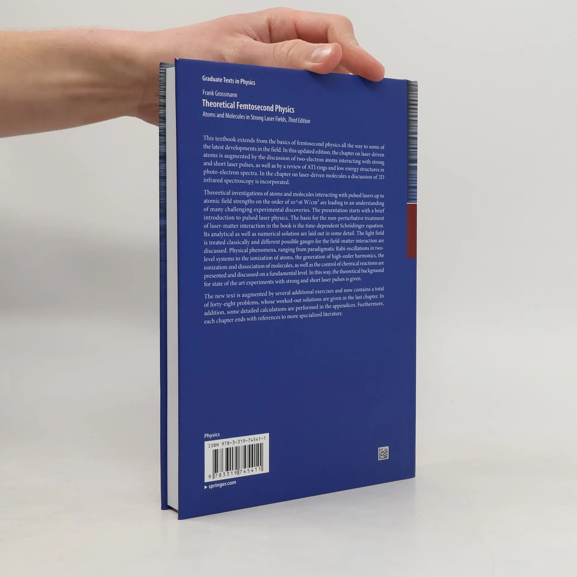Theoretical investigations of atoms and molecules interacting with pulsed or continuous wave lasers up to atomic field strengths on the order of 10 DEGREES16 W/cm are leading to an understanding of many challenging experimental discoveries. This book deals with the basics of femtosecond physics and goes up to the latest applications of new phenomena. The book presents an introduction to laser physics with mode-locking and pulsed laser operation. The solution of the time-dependent Schrodinger equation is discussed both analytically and numerically. The basis for the non-perturbative treatment of laser-matter interaction in the book is the numerical solution of the time-dependent Schrodinger equation. The light field is treated classically, and different possible gauges are discussed. Physical phenomena, ranging from Rabi-oscillations in two-level systems to the ionization of atoms, the generation of high harmonics, the ionization and dissociation of molecules as well as the control of chemical reactions are presented and discussed on a fundamental level. In this way the theoretical background for state of the art experiments with strong and short laser pulses is given. The text is augmented by more than thirty exercises, whose worked-out solutions are given in the last chapter. Some detailed calculations are performed in the appendices. Furthermore, each chapter ends with references to more specialized literature."