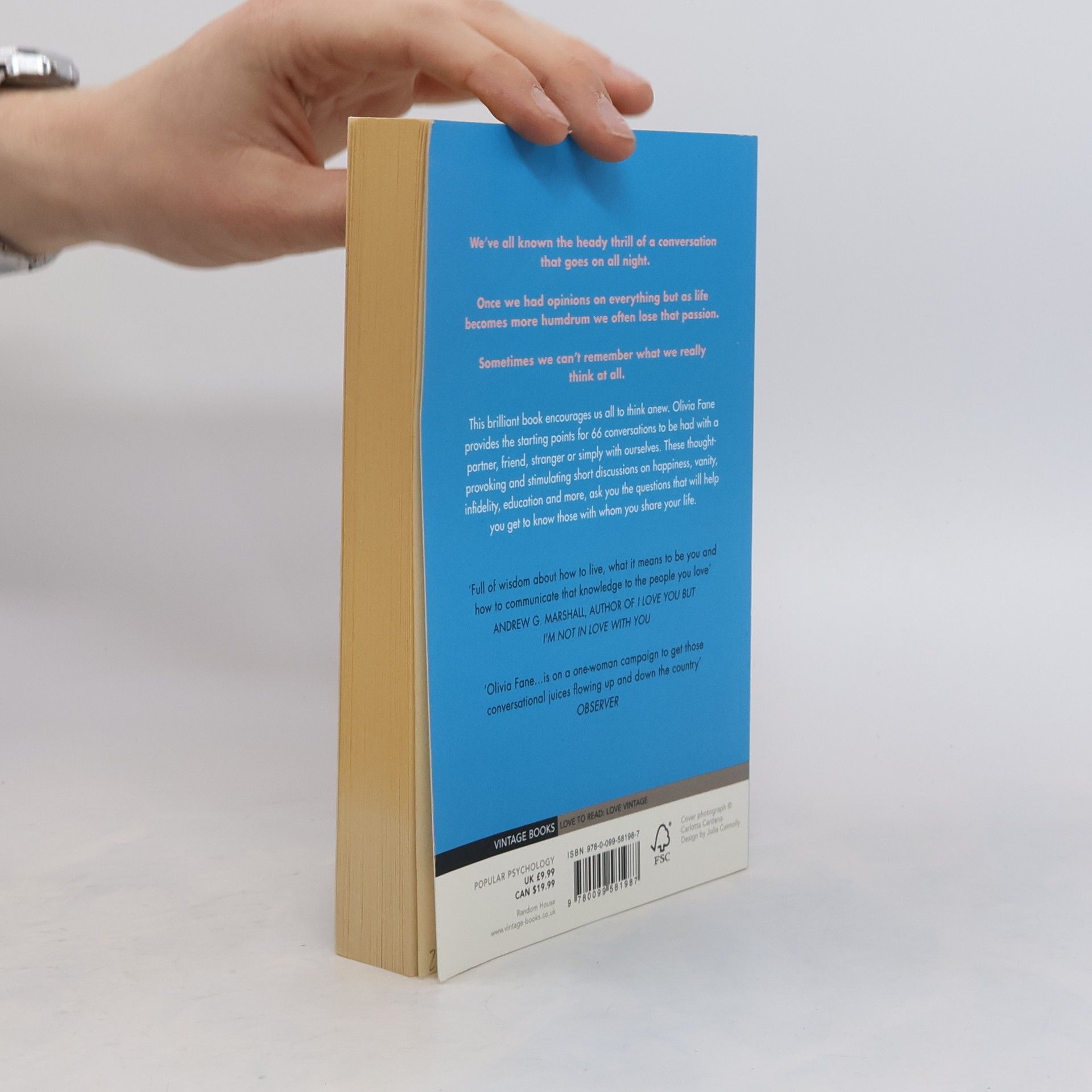 Olivia Fane provides the starting points for 66 conversations to be had with a partner, friend, stranger or simply with ourselves.Whether you agree or vehemently disagree, The Conversations provides endless food for thought and a surprising window onto some of the big subjects that define who we are and how we live.