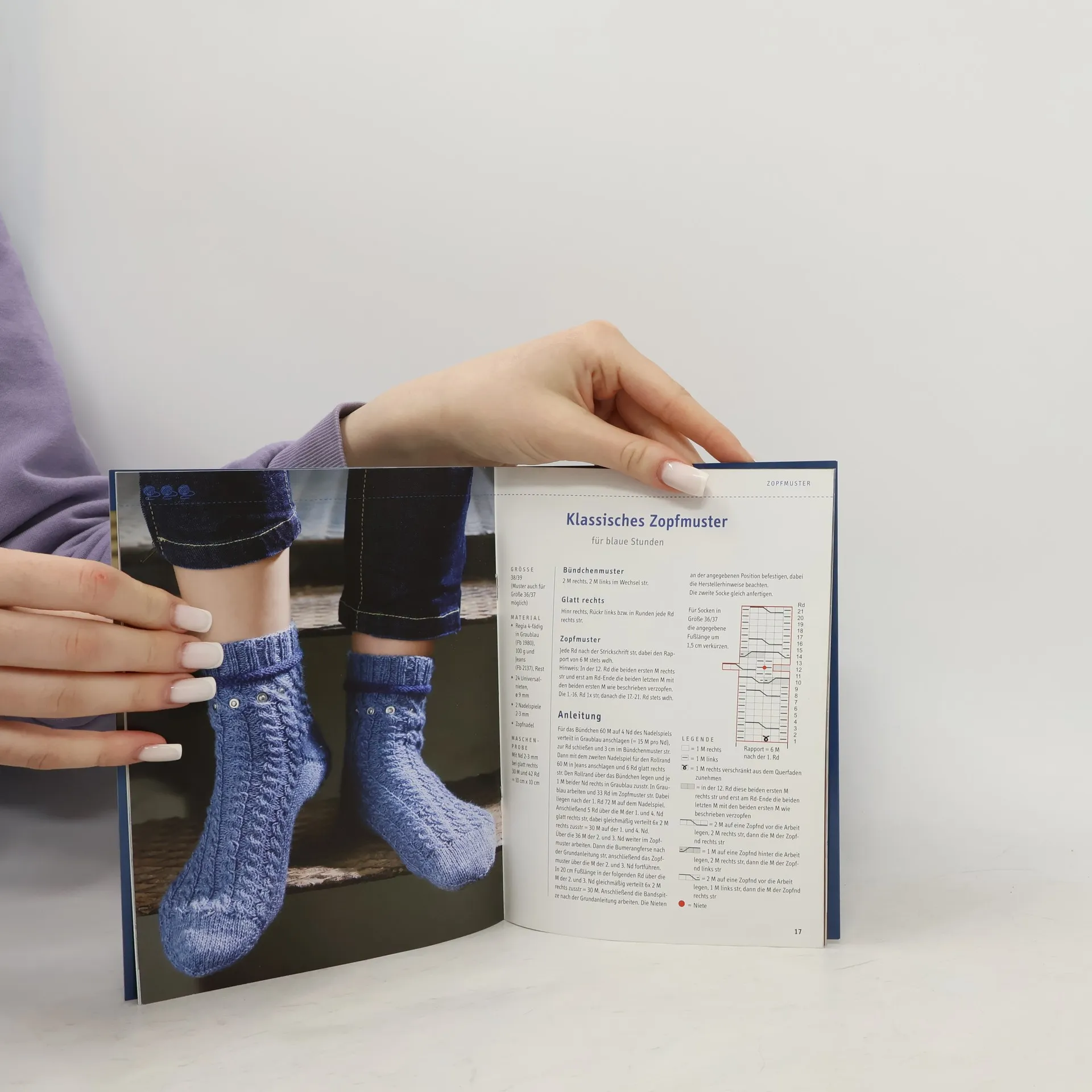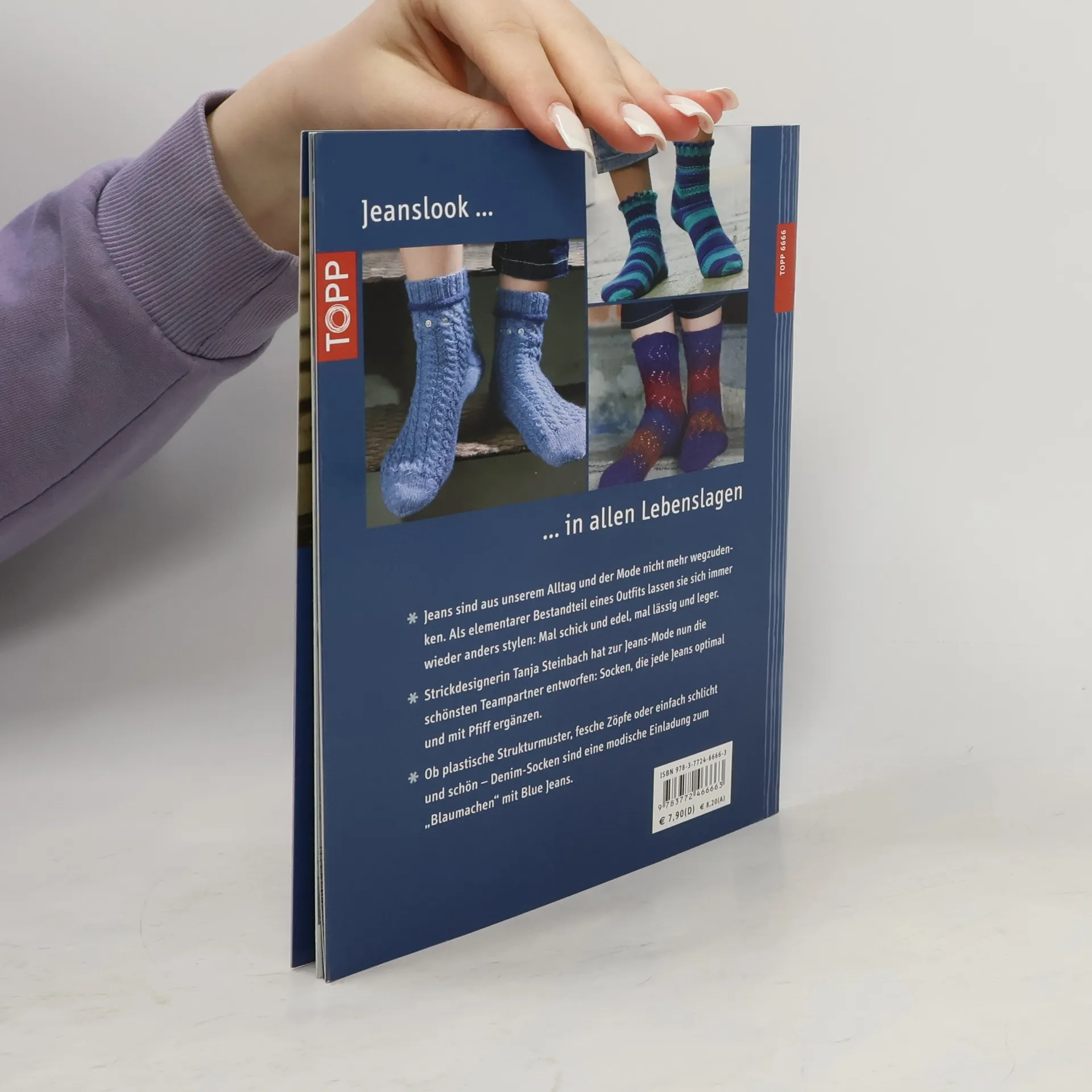 Jeans sind aus unserem Alltag und der Mode nicht mehr wegzudenken. Als elementarer Bestandteil eines Outfits lassen sie sich immer wieder anders stylen: Mal schick und edel, mal lässig und leger. Strickdesignerin Tanja Steinbach hat zur Jeans-Mode nun die schönsten Teampartner entworfen: Socken, die jede Jeans optimal und mit Pfiff ergänzen. Ob plastische Strukturmuster, fesche Zöpfe oder einfach schlicht und schön - Denim-Socken auch für Kinder und Herren sind eine modische Einladung zum „blaumachen" mit Blue Jeans. 32 Seiten, 17 x 22 cm, Umschlagklappen