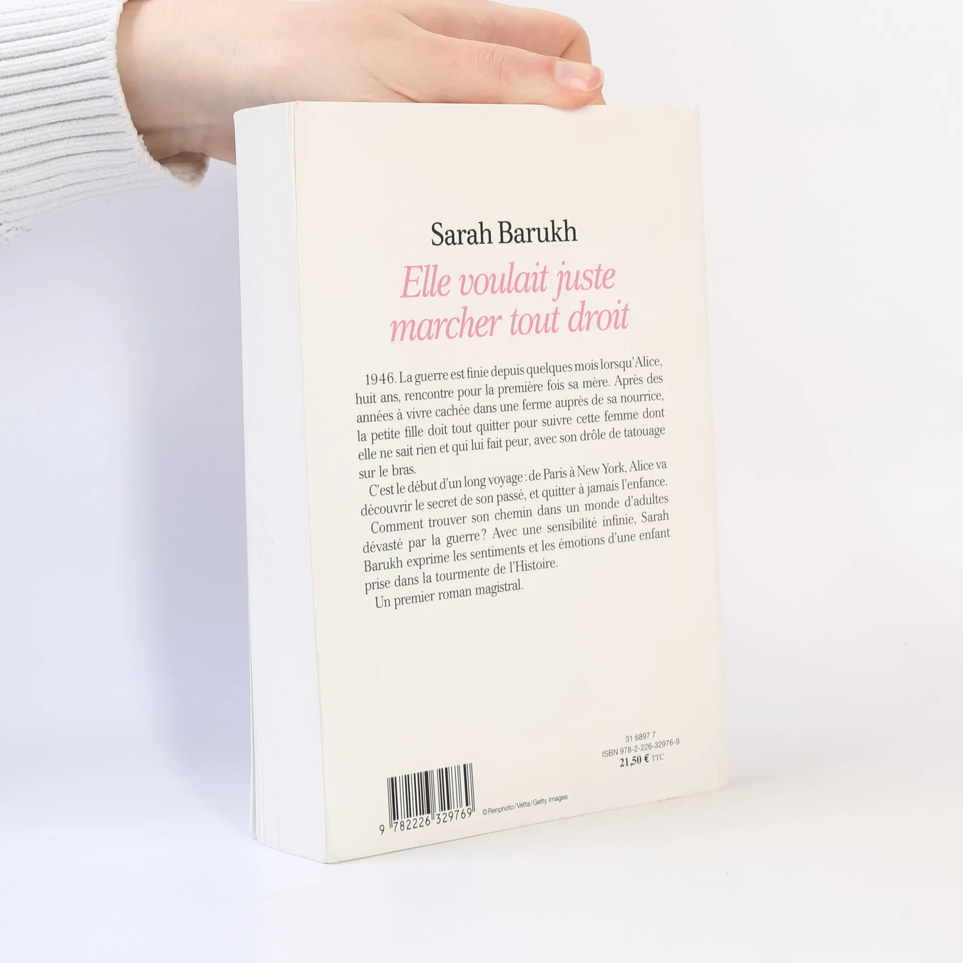 1946. La guerre est finie depuis quelques mois lorsqu'Alice, huit ans, rencontre pour la première fois sa mère. Après des années à vivre cachée dans une ferme auprès de sa nourrice, la petite fille doit tout quitter pour suivre cette femme dont elle ne sait rien et qui lui fait peur, avec son drôle de tatouage sur le bras. C'est le début d'un long voyage : de Paris à New York, Alice va découvrir le secret de son passé, et quitter à jamais l'enfance. Comment trouver son chemin dans un monde dévasté par la guerre ? Avec une sensibilité infinie, Sarah Barukh exprime les sentiments et les émotions d'une enfant prise dans la tourmente de l'Histoire. Un premier roman magistral.
