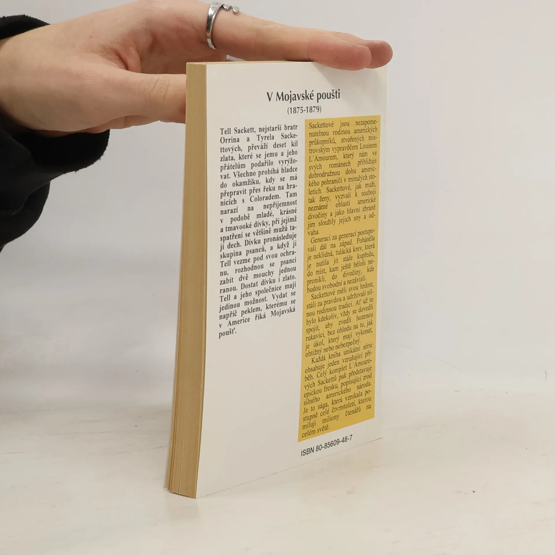 Tell Sackett, nejstarší bratr Orrina a Tyrella Sackettových, převáží deset kil zlata, které se jemu a jeho přátelům podařilo vyrýžovat. Všechno probíhá hladce do okamžiku, kdy se má přepravit přes řeku na hranicích s Coloradem. Tam narazí na nepříjemnost v podobě mladé, krásné a tmavooké dívky, při jejímž spatření se většině mužů tají dech. Dívku pronásleduje skupina psanců, a když ji Tell vezme pod svou ochranu, rozhodnou se psanci zabít dvě mouchy jednou ranou. Dostat dívku i zlato. Tell a jeho společnice mají jedinou možnost. Vydat sa napříč peklem, kterému sa v Americe říká Mojavská poušť.