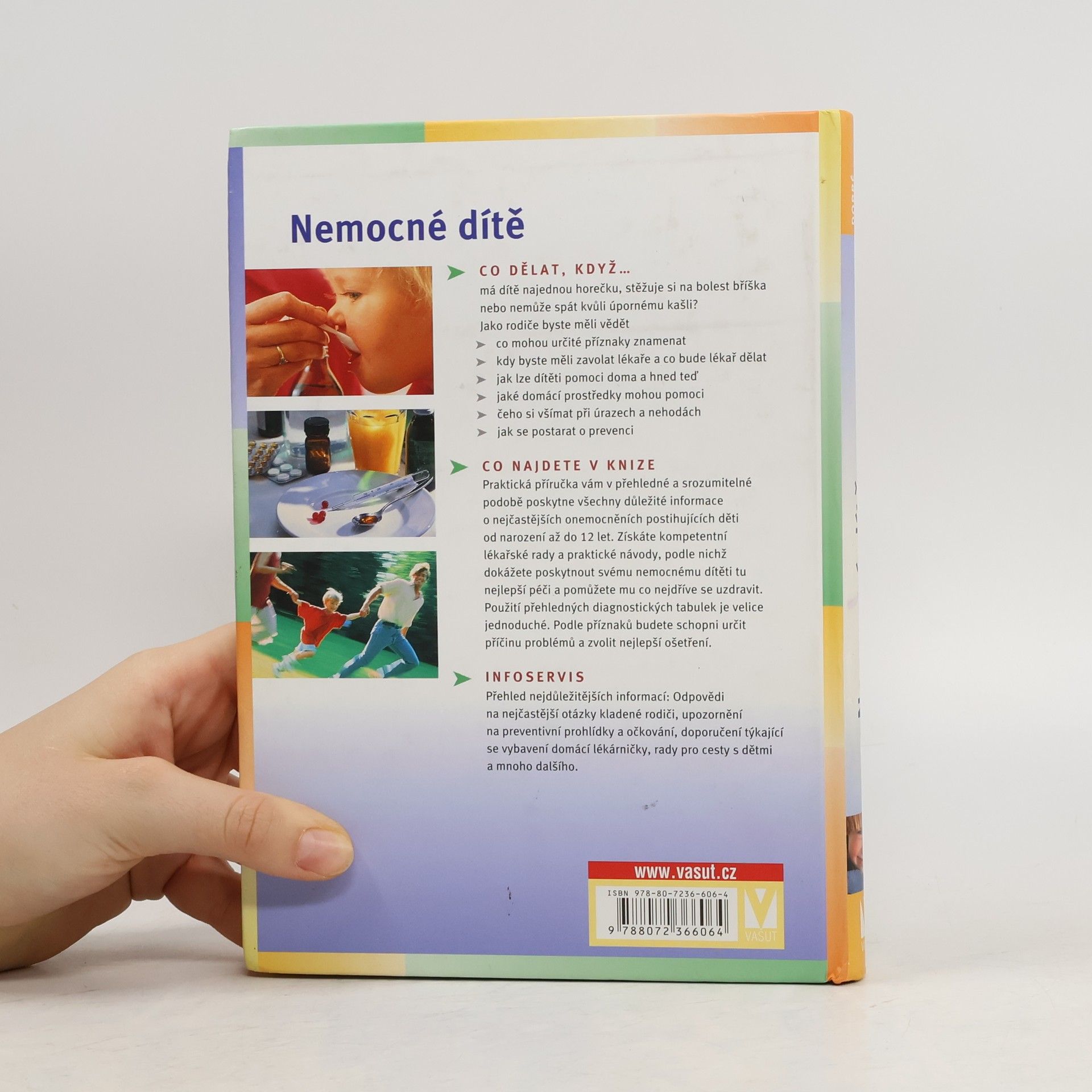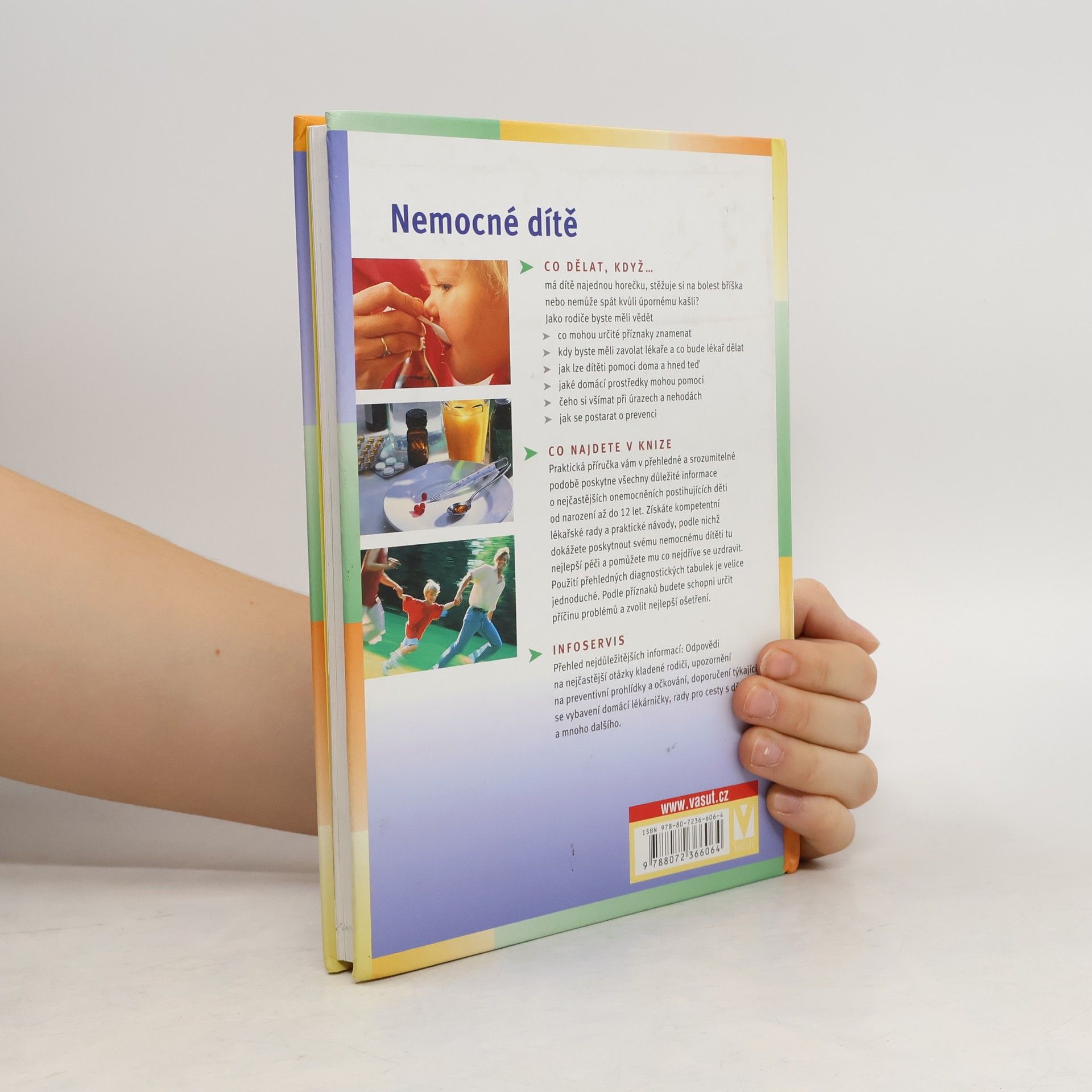 Praktická příručka vám v přehledné a srozumitelné podobě poskytne všechny důležité informace o nejčastějších onemocněních postihujících děti od narození až do 12 let. Získáte kompetentní lékařské rady a praktické návody, podle nichž dokážete poskytnout svému nemocnému dítěti tu nejlepší péči a pomůžete mu co nejdříve se uzdravit. Použití přehledných diagnostických tabulek je velice jednoduché.