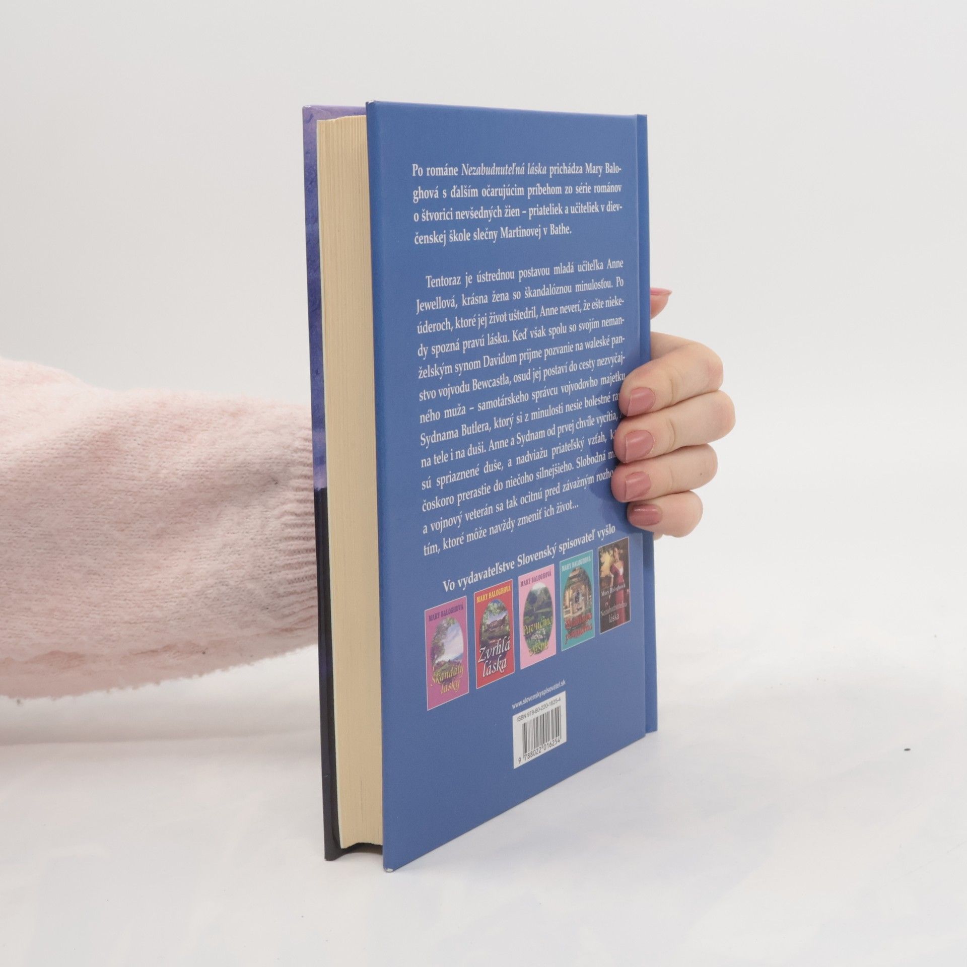 Po románe Nezabudnuteľná láska prichádza Mary Baloghová s ďalším očarujúcim príbehom zo série románov o štvorici nevšedných žien – priateliek a učiteliek v dievčenskej škole slečny Martinovej v Bathe. Tentoraz je ústrednou postavou mladá učiteľka Anne Jewellová, krásna žena so škandalóznou minulosťou. Po úderoch, ktoré jej život uštedril, Anne neverí, že ešte niekedy spozná pravú lásku. Keď však spolu so svojím nemanželským synom Davidom prijme pozvanie na waleské panstvo vojvodu Bewcastla, osud jej postaví do cesty nezvyčajného muža – samotárskeho správcu vojvodovho majetku Sydnama Butlera, ktorý si z minulosti nesie bolestné rany na tele i na duši. Anne a Sydnam od prvej chvíle vycítia, že sú spriaznené duše, a nadviažu priateľský vzťah, ktorý čoskoro prerastie do niečoho silnejšieho. Slobodná matka a vojnový veterán sa tak ocitnú pred závažným rozhodnutím, ktoré môže navždy zmeniť ich život...