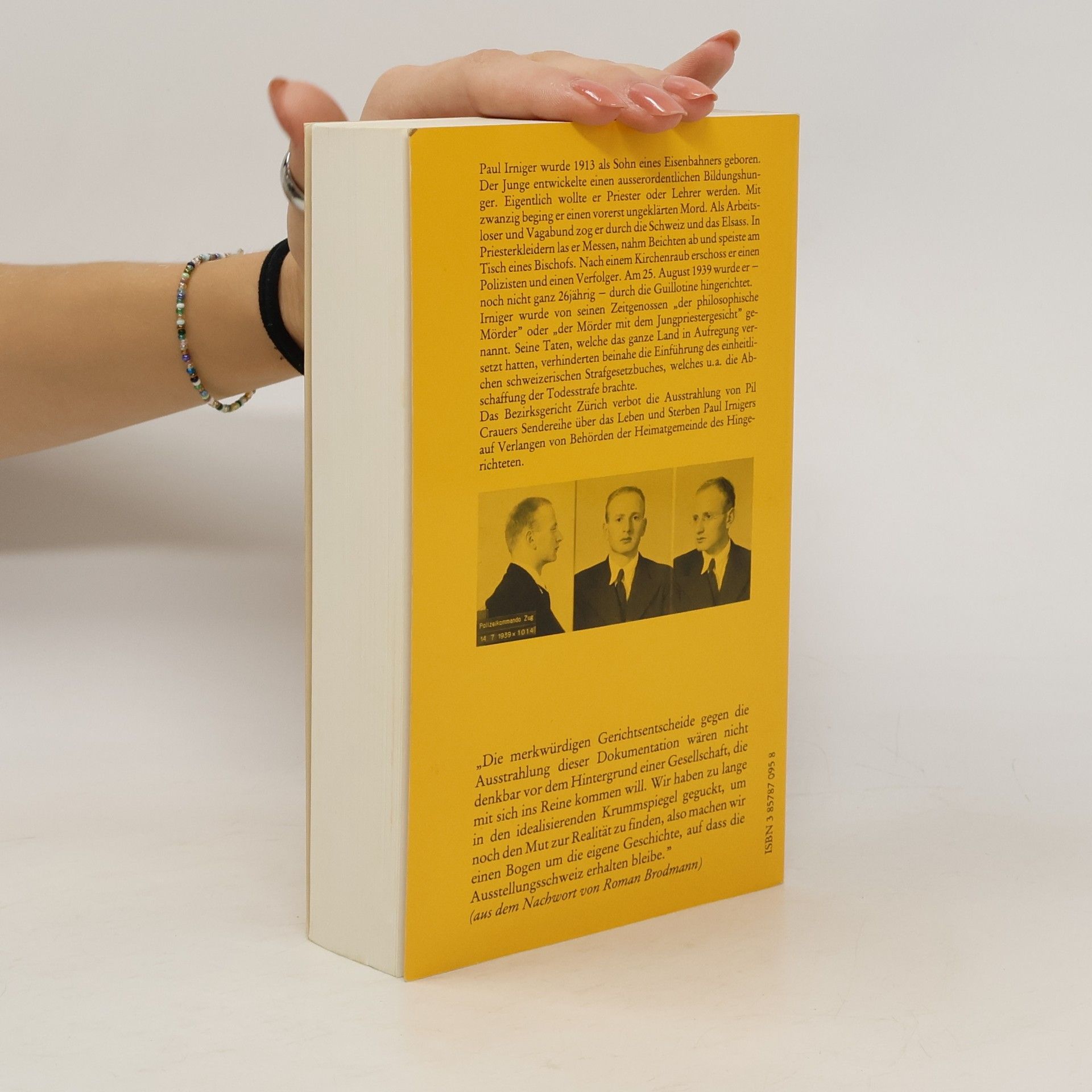'Der SRG war die Ausstrahlung von Pil Crauers vierteiliger Sendereihe über 'Das Leben und Sterben Paul Irnigers' auf Antrag von Irnigers Heimatgemeinde Niederrohrdorf vom Bezirksgericht Zürich verboten worden. Nun hat der Autor das Medium gewechselt und den Stoff zu einem Buch verarbeitet. Neben dem vollen Text der Sendereihe in Hochdeutsch und Schweizerdeutsch enthält der Band eine fast hundertseitige Bilddokumentation, eine Darstellung der Hintergründe des Verbots sowie ein Nachwort von Roman Brodmann. Die Geschichte jenes Paul Irniger, der Priester werden wollte, mit zwanzig seinen ersten Mord beging, als Vagabund durch die Schweiz und durchs Elsass zog, in falschen Priestergewändern Messen las und Beichten abnahm, nach einem Kirchenraub einen Polizisten und einen weiteren Verfolger erschoss und schliesslich, noch nicht 26jährig, am 25. August 1939 hingerichtet wurde, ist so literaturträchtig, dass man sich wundert, dass nicht längst ein Schweizer Schriftsteller sich des Themas angenommen hat.' - Die Weltwoche