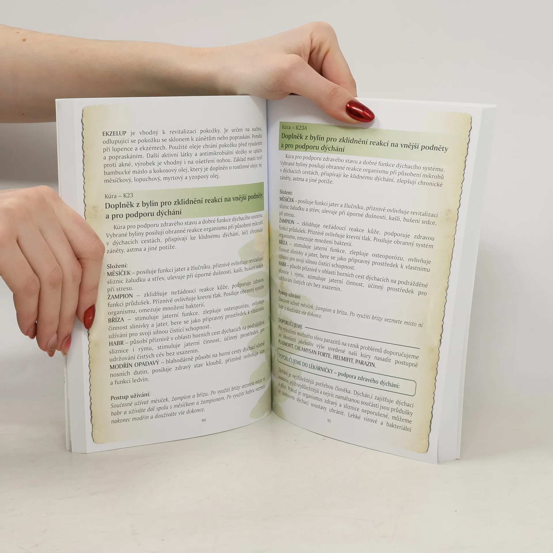 Kniha v úvodu krátce představuje firmu Naděje paní Mgr. Jarmily Podhorné v Brodku u Konice věnující se léčivým bylinám,které z velké části sama vyrábí. Dále je v knize přehledně sestavena tabulka indikací,podle které si lze dohledat jaká bylina je na danný problém nejlepší. Podrobně jsou pak rozebrány nejčastější zdravotní problémy a kompletní bylinné kůry k jejich nápravě. V závěrečné části knihy jsou představeny všechny výrobky firmy,tinktury,spec. směsi,masti,gely oleje,gemmoglukany, koupele a další.