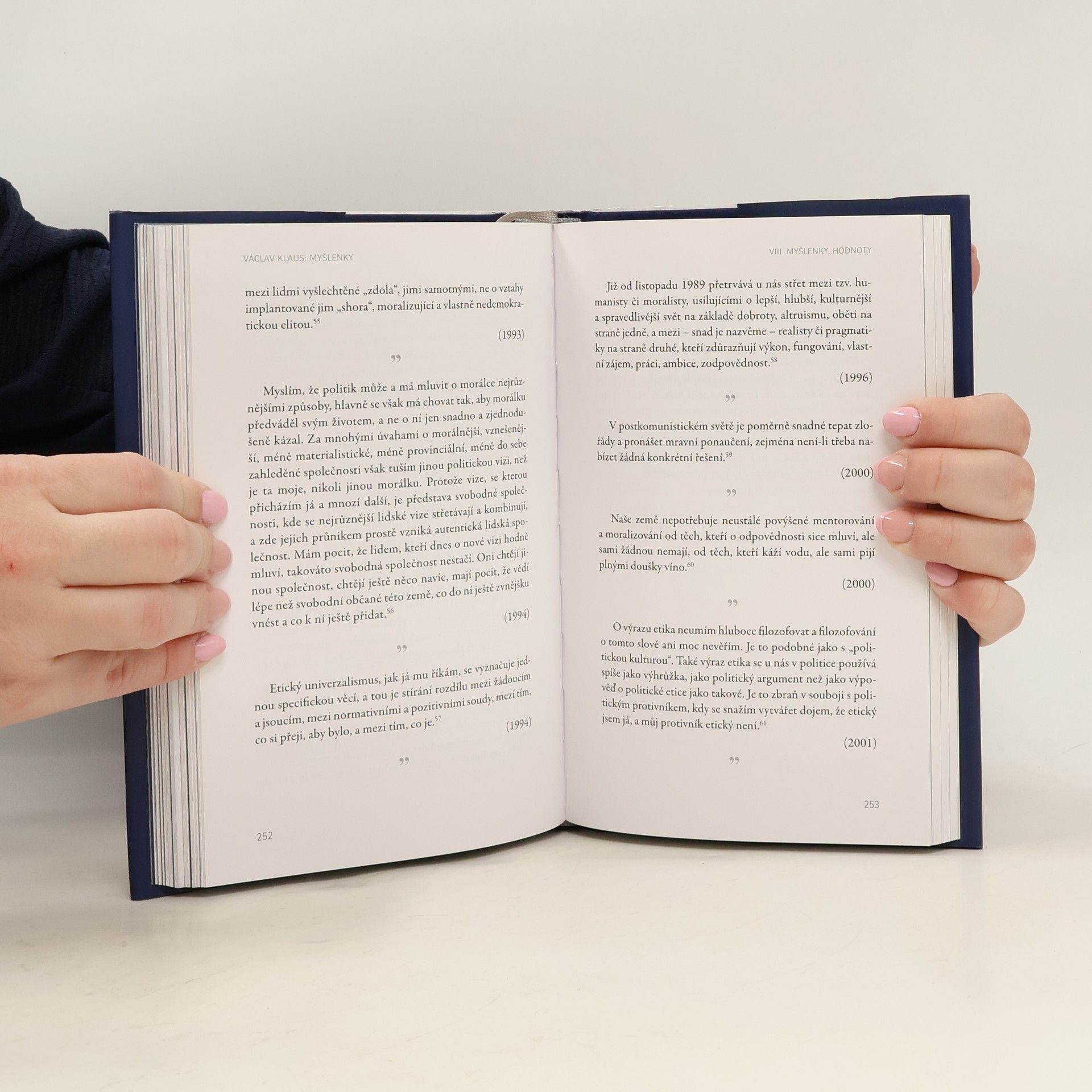 Za tři dekády našeho polistopadového vývoje nejsou se jménem Václava Klause spojeny pouze zásadní historické události, jež formovaly naši současnost. Václav Klaus rovněž patří k největším hybatelům veřejné diskuse v naší zemi. Je to člověk pevného ideového zázemí, které plyne z jeho hluboké erudice mající základ ve společenských vědách a které upevnila unikátní zkušenost dlouhých let na špici domácí i evropské politiky. Pevné ideové zakotvení mu dalo kompas v bezprecedentních situacích po pádu komunismu, stejně tak jako mu dnes umožňuje orientaci v informační kakofonii „světa sociálních sítí“. Na Václavu Klausovi je pozoruhodná šíře jeho obzoru a názorová konzistentnost. Pozorný čtenář jeho textů brzy zjistí, že jeho názory jsou stálé a téměř nevyžadují korekci ani po letech. Celá tato kniha má být právě o silných, přesvědčivých názorech a slovech – o slovech, která se vršila v uplynulých třech desetiletích v Klausových knihách, článcích, projevech, rozhovorech, a která jsou odrazem jeho pevných názorů, jeho konzistentního myšlenkového světa. Tyto ideje mnohé formovaly a ve šťastnějších letech naší polistopadové minulosti významně spoluutvářely život v naší zemi. Citáty Václava Klause do knihy, která vznikla u příležitosti jeho 80. narozenin, vybral a uspořádal Tomáš Břicháček.