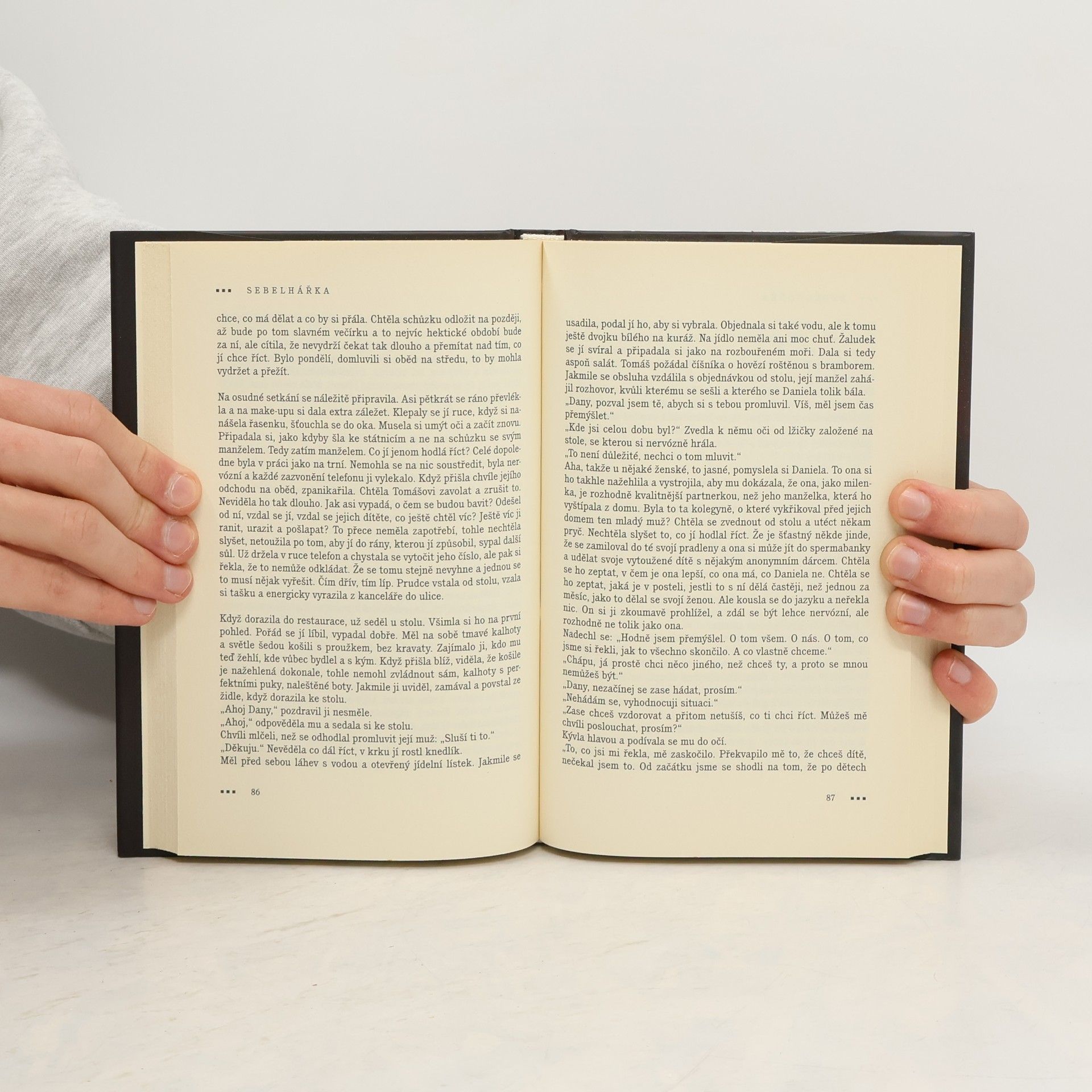 Sebelhářka je příběh o nenaplněných a raněných citech, o souboji srdce s rozumem, o touze a vášni. Každé manželství má své problémy, i to, které na první pohled vypadá jako dokonalé. Dá se ještě zachránit vztah, v němž před ignorantstvím a pravděpodobnou nevěrou manžela zavírá jeho žena oči, dokud jí je neotevře jiný muž, který vstoupí do jejího života? A má vůbec ještě cenu takové manželství zachraňovat? Daniela si namlouvá, že její manželství je v naprostém pořádku. A to v kontextu jiných životních příběhů možná „v pořádku“ je, přesto není šťastná, i když předstírá opak. Tomáš je dominantní muž, který se zajímá především sám o sebe a svoji ženu zanedbává. Ta časem zjišťuje, že by mohla být spokojená, dokonce by snad zvládla žít i bez Tomáše, ale přesto nemá chuť ukončit manželství, kterému kdysi tolik věřila. Navzdory tomuto přesvědčení v ní rostou jiné chutě, pro šťastné manželství zcela nevhodné, je však příliš těžké odolat.
