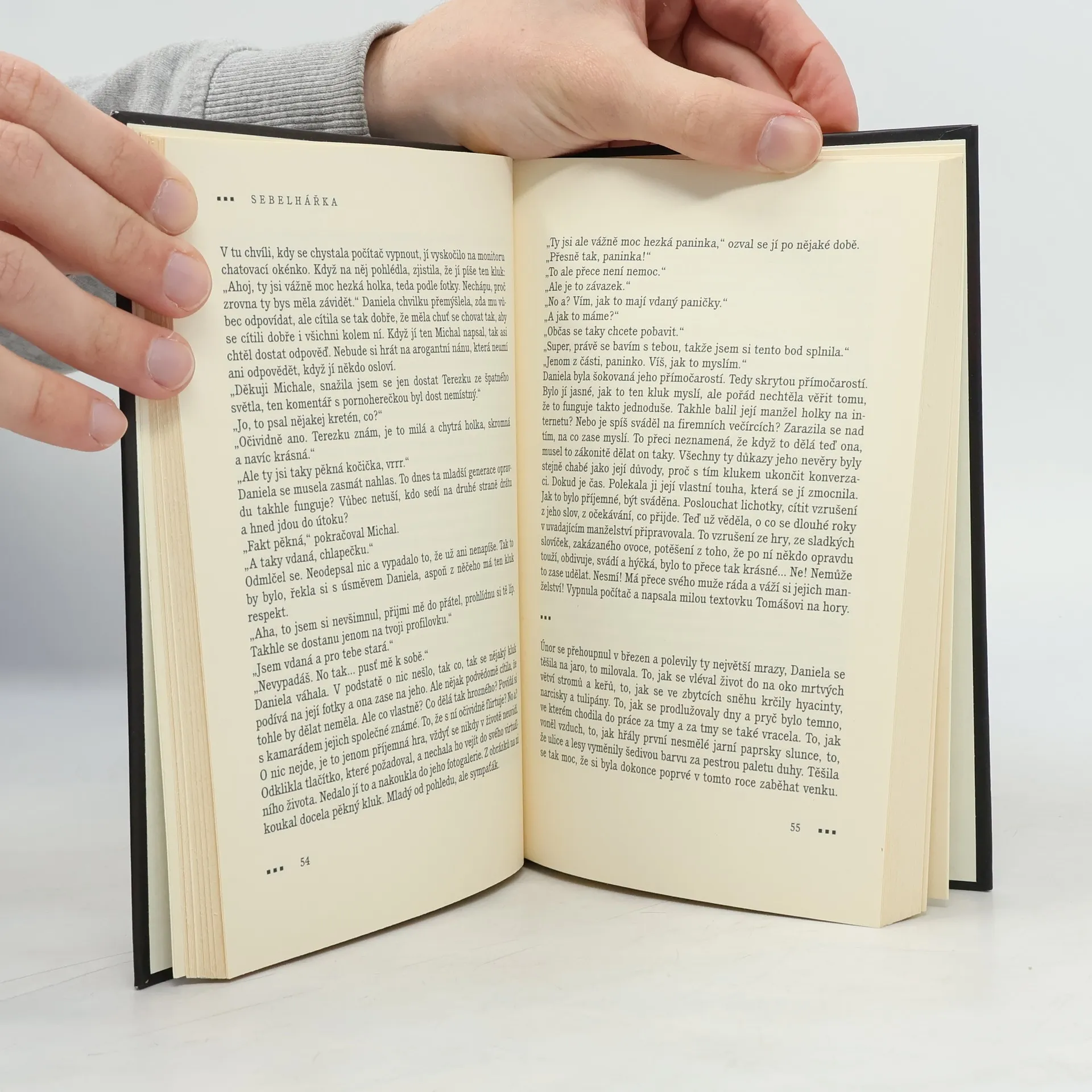 Sebelhářka je příběh o nenaplněných a raněných citech, o souboji srdce s rozumem, o touze a vášni. Každé manželství má své problémy, i to, které na první pohled vypadá jako dokonalé. Dá se ještě zachránit vztah, v němž před ignorantstvím a pravděpodobnou nevěrou manžela zavírá jeho žena oči, dokud jí je neotevře jiný muž, který vstoupí do jejího života? A má vůbec ještě cenu takové manželství zachraňovat? Daniela si namlouvá, že její manželství je v naprostém pořádku. A to v kontextu jiných životních příběhů možná „v pořádku“ je, přesto není šťastná, i když předstírá opak. Tomáš je dominantní muž, který se zajímá především sám o sebe a svoji ženu zanedbává. Ta časem zjišťuje, že by mohla být spokojená, dokonce by snad zvládla žít i bez Tomáše, ale přesto nemá chuť ukončit manželství, kterému kdysi tolik věřila. Navzdory tomuto přesvědčení v ní rostou jiné chutě, pro šťastné manželství zcela nevhodné, je však příliš těžké odolat.