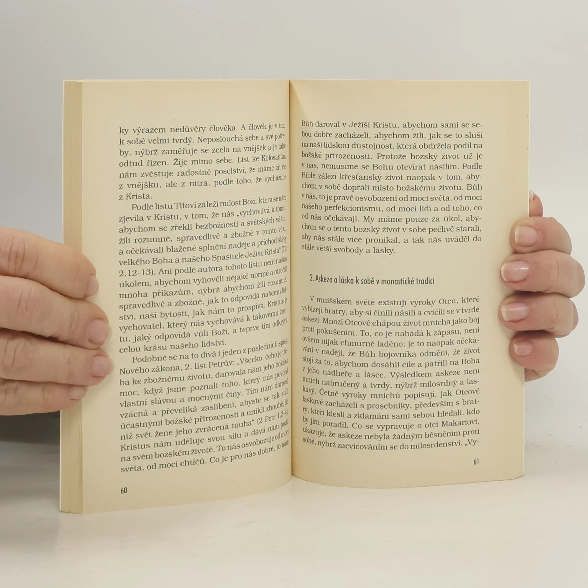 Autor vychází především z tradice pouštních otců. Z ní vyvozuje, že jediným správným východiskem k vyrovnanému vztahu k Bohu i lidem je především smíření se sebou samým, se svými slabostmi a stinnými stránkami a hluboká důvěra v Boží shovívavost a milosrdenství. Úspěšný titul vychází již ve třetím vydání.