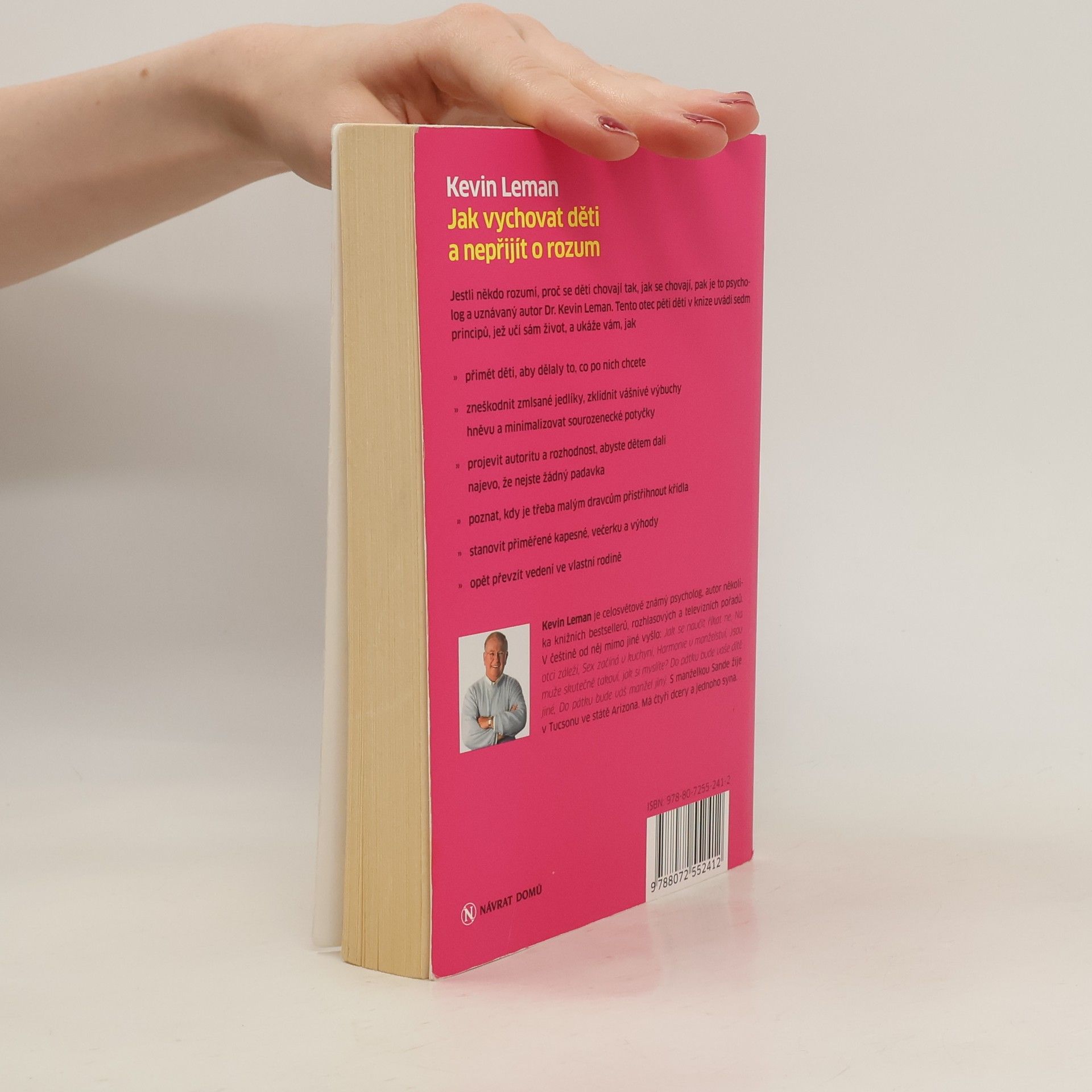 Principy, jež učí sám život. Jestli někdo rozumí, proč se děti chovají tak, jak se chovají, pak je to psycholog a uznávaný autor Dr. Kevin Leman. Tento otec pěti dětí v knize uvádí sedm principů, jež učí sám život, a ukáže vám , •jak přimět děti, aby dělaly to, co po nich chcete, •zneškodnit zmlsané jedlíky, •zklidnit vášnivé výbuchy hněvu, •minimalizovat sourozenecké potyčky, •projevit autoritu a rozhodnost, abyste dětem dali najevo, že nejste žádný padavka, • poznat, kdy je třeba malým dravcům přistřihnout křídla, • stanovit přiměřené kapesné, večerku a výhody, • opět převzít vedení ve vlastní rodin