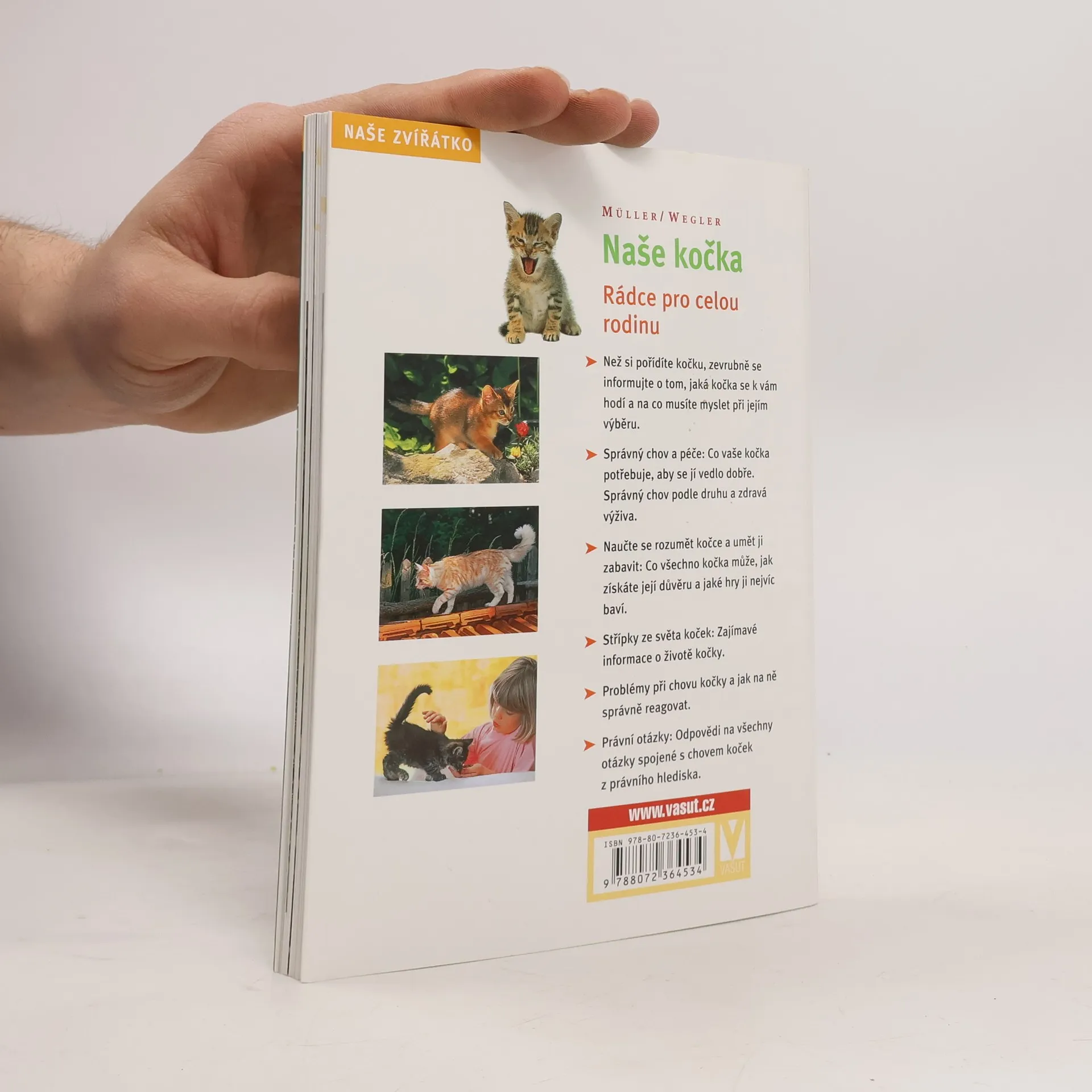 Než si pořídíte kočku, zevrubně se informujte o tom, jaká kočka se k vám hodí a na co musíte myslet při jejím výběru. Správný chov a péče: Co vaše kočka potřebuje, aby se jí vedlo dobře. Správný chov podle druhu a zdravá výživa. Naučte se rozumět kočce a umět ji zabavit: Co všechno kočka může, jak získáte její důvěru a jaké hry ji nejvíc baví. Střípky ze světa koček: Zajímavé informace o životě kočky. Problémy při chovu kočky a jak na ně správně reagovat. Právní otázky: Odpovědi na všechny otázky spojené s chovem koček z právního hlediska.