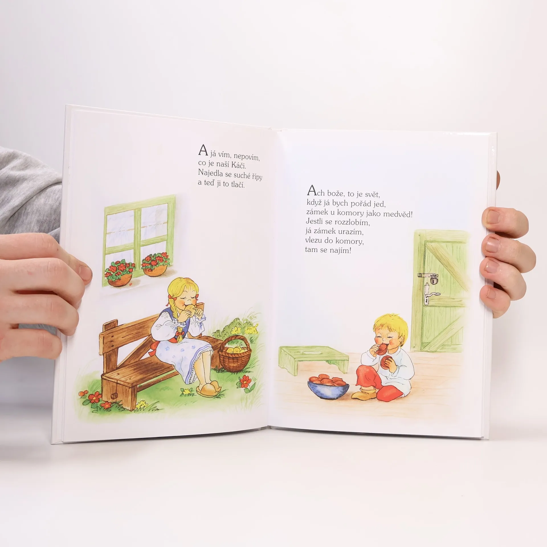 Chodí pešek okolo, Naše Káča pláče, Eniky, beniky, kliky bé, Nestarej se, ženo má, Kopali, orali, já ještě ležel... a další známá i pozapomenutá česká lidová říkadla a básničky jsou doplněna veselými ilustracemi Vladimíry Vopičkové. Knížka plná krátkých, lehce zapamatovatelnýchříkadel je určena našim nejmenším.