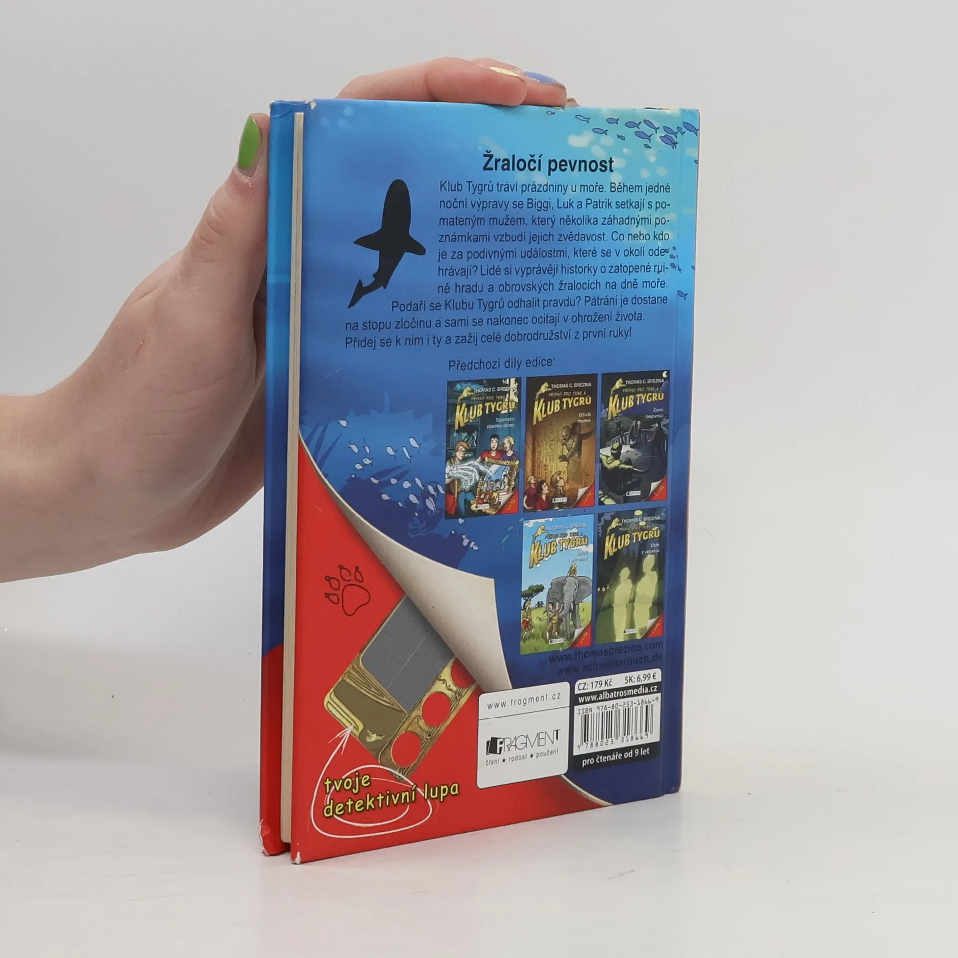 Klub Tygrů tráví prázdniny u moře. Během jedné noční výpravy se Biggi, Luk a Patrik setkají s pomateným mužem, který několika záhadnými poznámkami vzbudí jejich zvědavost. Co nebo kdo je za podivnými událostmi, které se v okolí odehrávají? Lidé si vyprávějí historky o zatopené ruině hradu a obrovských žralocích na dně moře. Podaří se Klubu Tygrů odhalit pravdu? Pátrání je dostane na stopu zločinu a sami se nakonec ocitají v ohrožení života. Přidej se k nim i ty a zažij celé dobrodružství z první ruky!