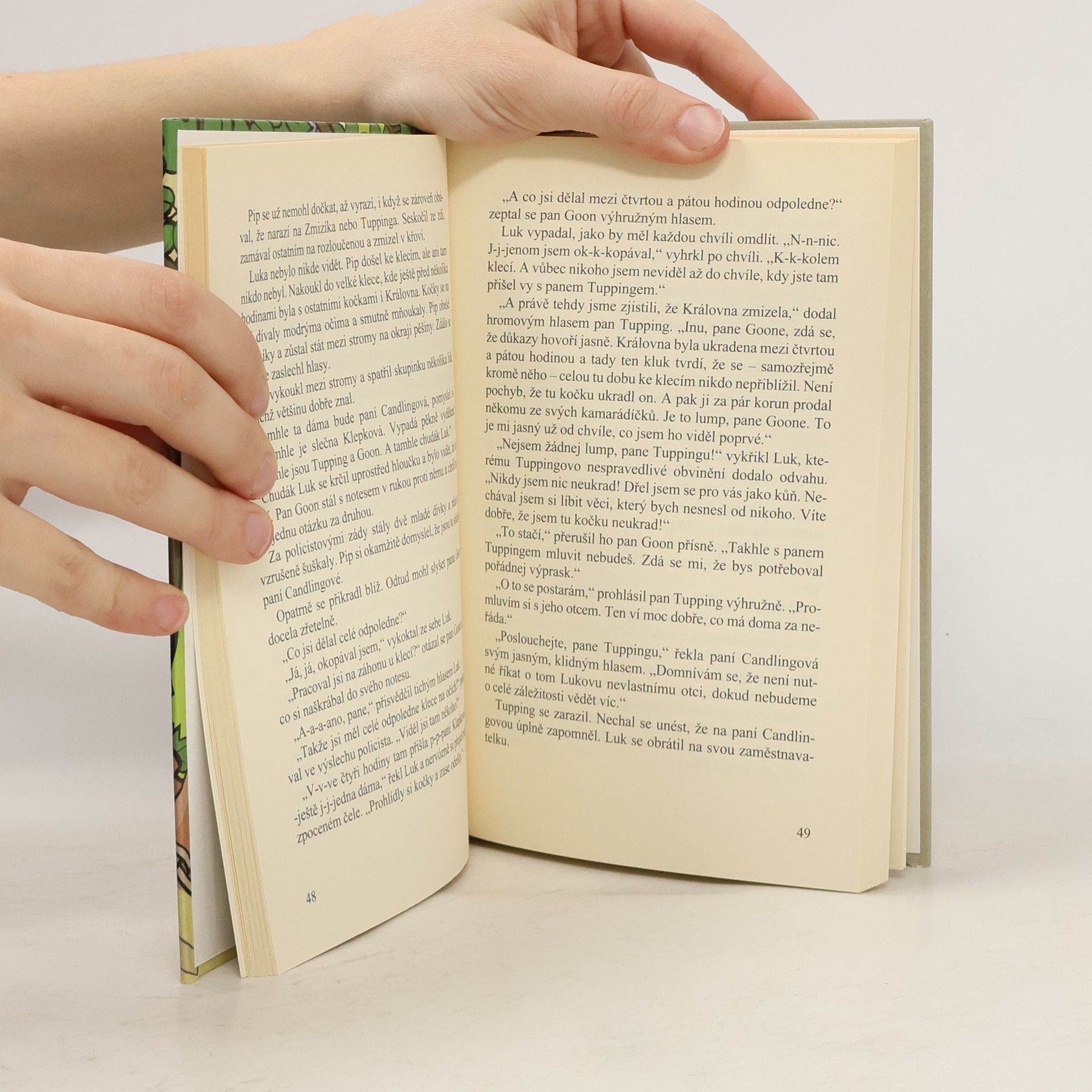 Pět pátračů, Bětka, Pip, Daisy, Larry, Špekoun a jeho pes Brok, se snaží zjistit, kam se poděla siamská kočka paní Candlingové. Ukradl ji zahradní pomocník Luk, který nedaleko pracoval na zahradě? Čí jsou však velké šlápoty u klece? Ty nemohou přece být Lukovy! Kromě toho jsou děti přesvědčené, že by Luk nikdy nic neukradl. Jak to ale dokážou? Děti podezřívají paní Klapkovou i ošetřovatele paní Candlingové, pana Tuppinga, kterému jde na ruku policista pan Goon. Případ se zamotává, a i když je zloděj mazaný, děti jeho úskoky prohlédnou, a tak se mají nakonec s čím pochlubit před inspektorem, když případ bravurně vyřeší k velké nelibosti policisty Goona.