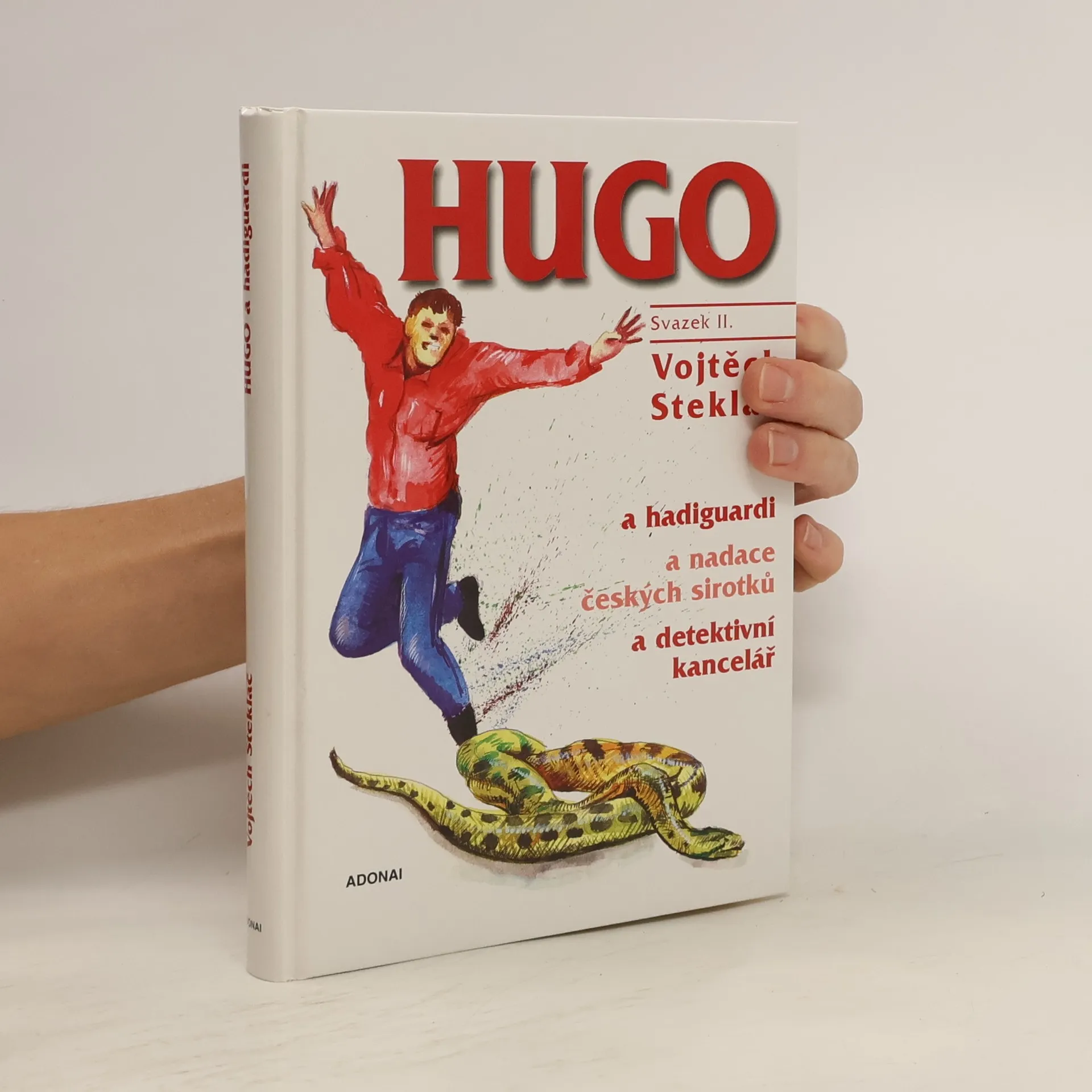 " Jako první se pustil do práce Eliáš. Jeho jemná technika obtáčení kolem těla rychle slavila úspěch. Tak co, pane Kubíček ..... Hadiguardi, nadace českých sirotků a detektivní kancelář jsou hlavními účastníky děje této pokračovací knihy.