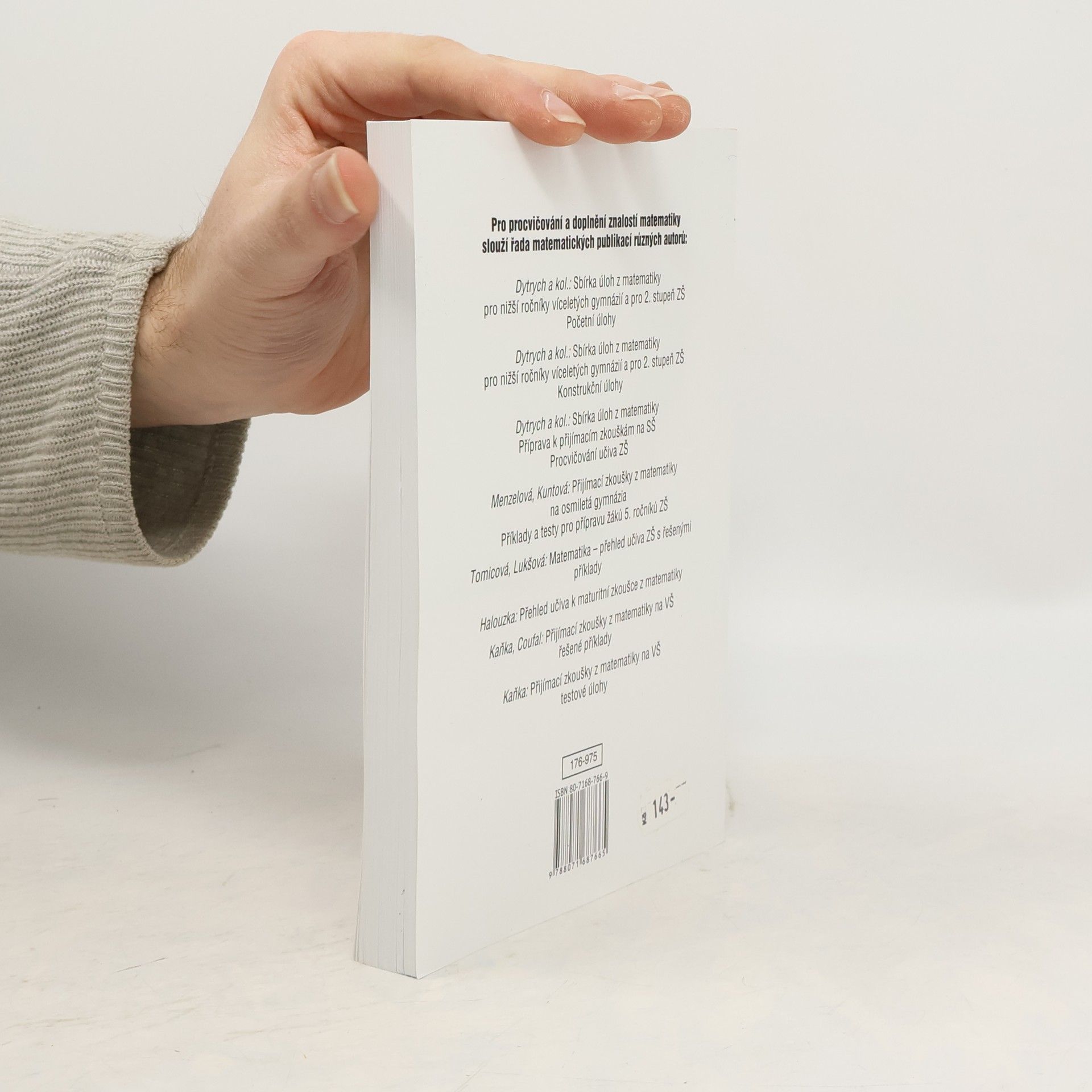 Sbírka obsahuje velké množství originálních příkladů potřebných k procvičení učiva prověřovaného u přijímacích zkoušek. Jednotlivé kapitoly jsou uvedeny řešenými úlohami, které mají posloužit jako ukázky postupů a vhodných forem zápisů řešení. V závěru každé kapitoly jsou uvedeny výsledky a řešení úloh.