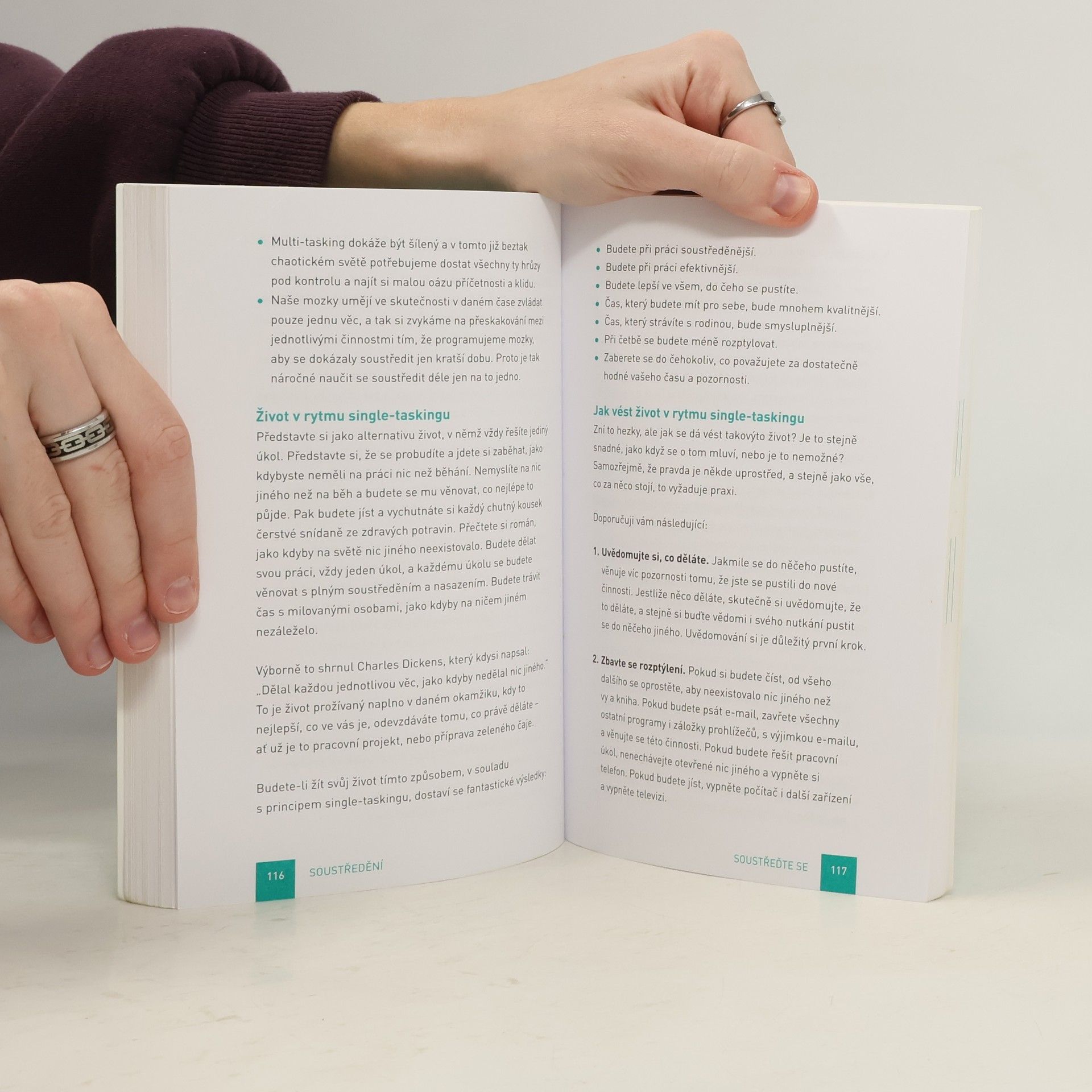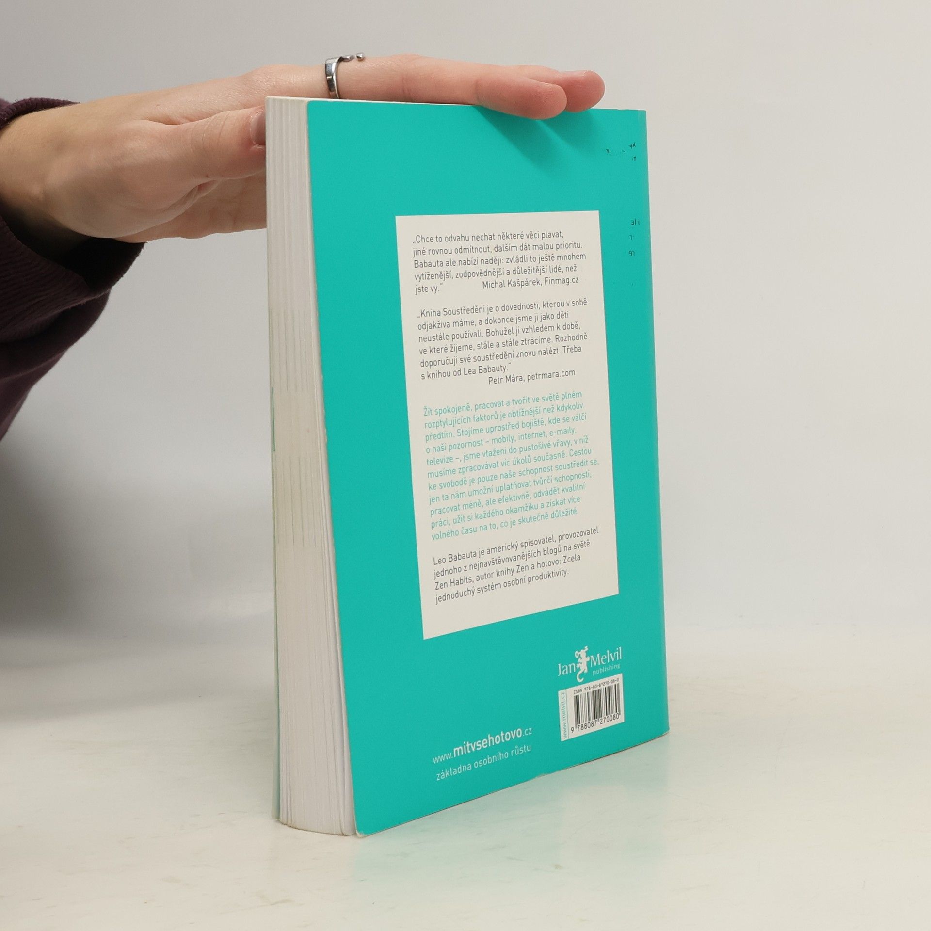 Ruku na srdce: dokážete se ještě vůbec soustředit jako za starých časů? Dokážete rozpoznat, co je pro vás opravdu důležité, a podle toho se rozhodnout o naplnění další minuty, hodiny, dne, roku vašeho života? Nebo jste tak závislí, nesoustředění a multitaskující jako velká část naší generace? Knížka pro všechny, kteří se jen stěží vzpamatovávají po zásahu kouzlem internetu, sociálních sítí a nepřetržité online dosažitelnosti. Další skvělá, praktická a inspirativní kniha Leo Babauty, jehož krédem je životní minimalismus. Naučte se znovu něco, co jste kdysi uměli od přírody: soustředit se a žít.