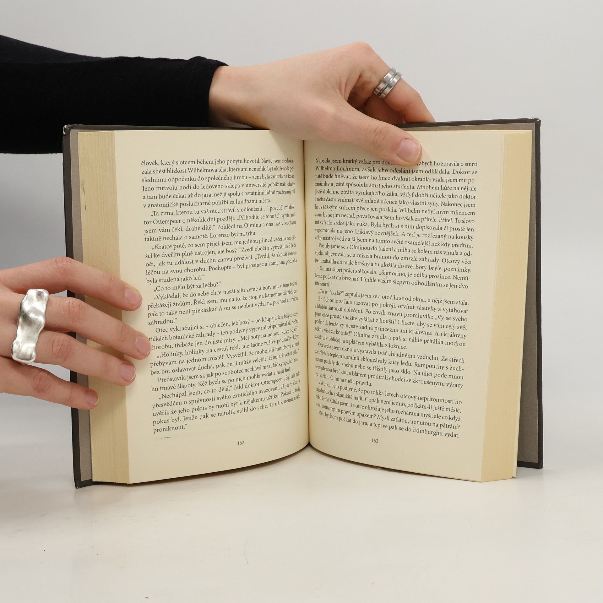 Strhující historický román z renesančních Benátek představuje neobvyklou hrdinku: mladou lékařku Gabriellu Mondini, jež svou profesi vykonává za podpory svého otce-lékaře a k nelibosti svých mužských kolegů. Pak ale její otec na jedné ze svých cest záhadně zmizí a Gabriella se jej vydá hledat. Na své dobrodružné pouti prochází soudobou Evropou a Středomořím, od Itálie přes Německo či Skotsko až po Maroko; jako vodítka jí slouží jen záhadné dopisy, které jí její otec občas posílá… Regina O'Melvenyová se ve svém románovém debutu opírá nejen o zevrubnou znalost historie, ale i o svou zkušenost oceňované básnířky: poetický jazyk románu podmanivě evokuje barvitý svět renesance i střet moderní, silné a odvážné ženy s nevstřícným okolím.