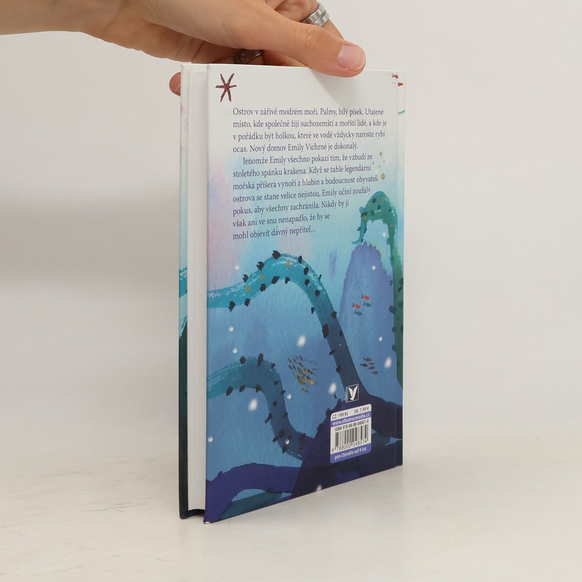 Nový domov Emily Vichrné se zdá být dokonalý. Jenže pod hladinou číhá nebezpečí... Ostrov v zářivě modrém moři. Palmy, bílý písek. Utajené místo, kde společně žijí suchozemští a mořští lidé a kde je v pořádku být holkou, které ve vodě vždycky naroste rybí ocas. Nový domov Emily Vichrné je dokonalý. Jenomže Emily všechno pokazí tím, že vzbudí ze stoletého spánku Krakena. Když se tahle legendární mořská příšera vynoří z hlubin a budoucnost obyvatel ostrova se stane velice nejistou, Emily učiní zoufalý pokus, aby všechny zachránila. Podaří se jí to?