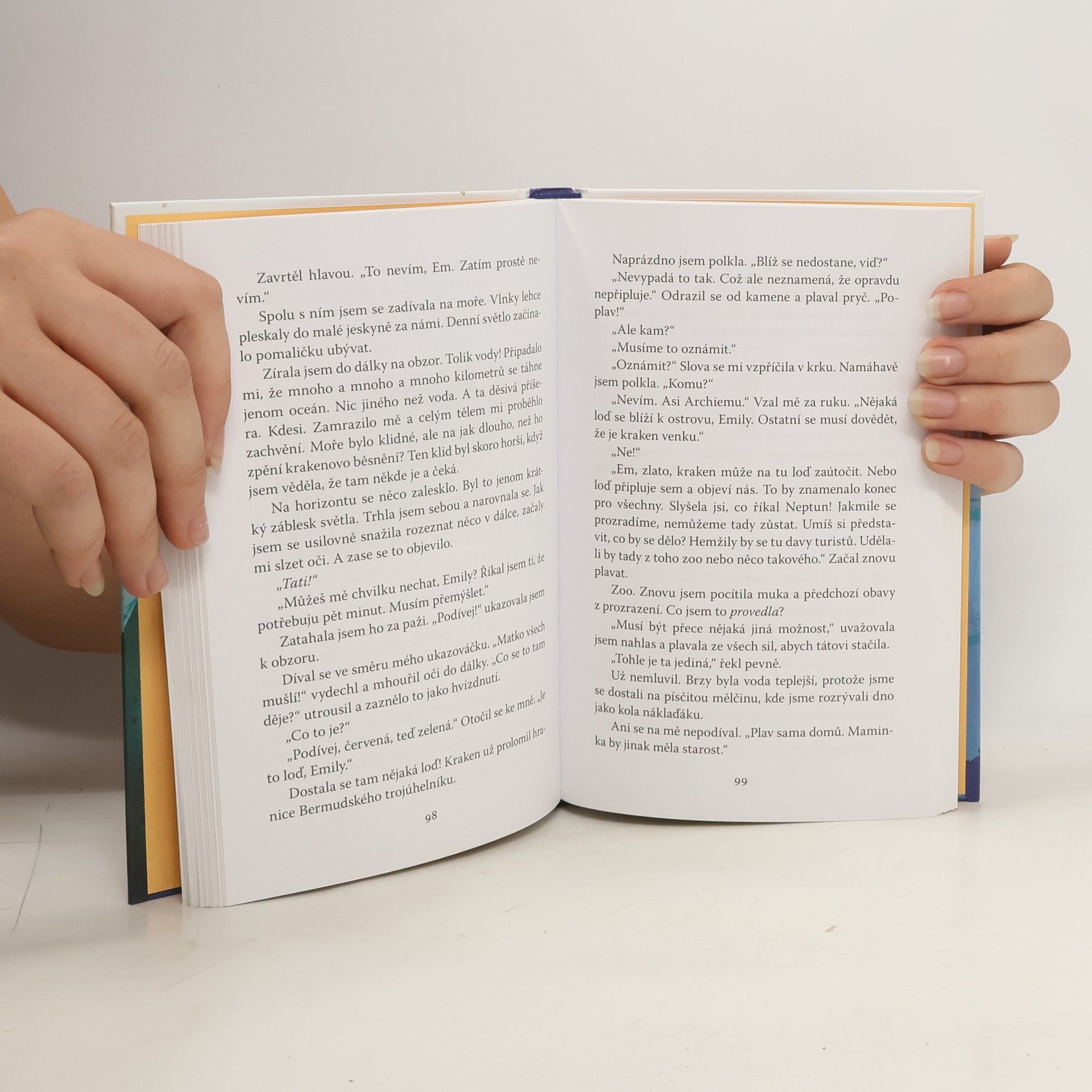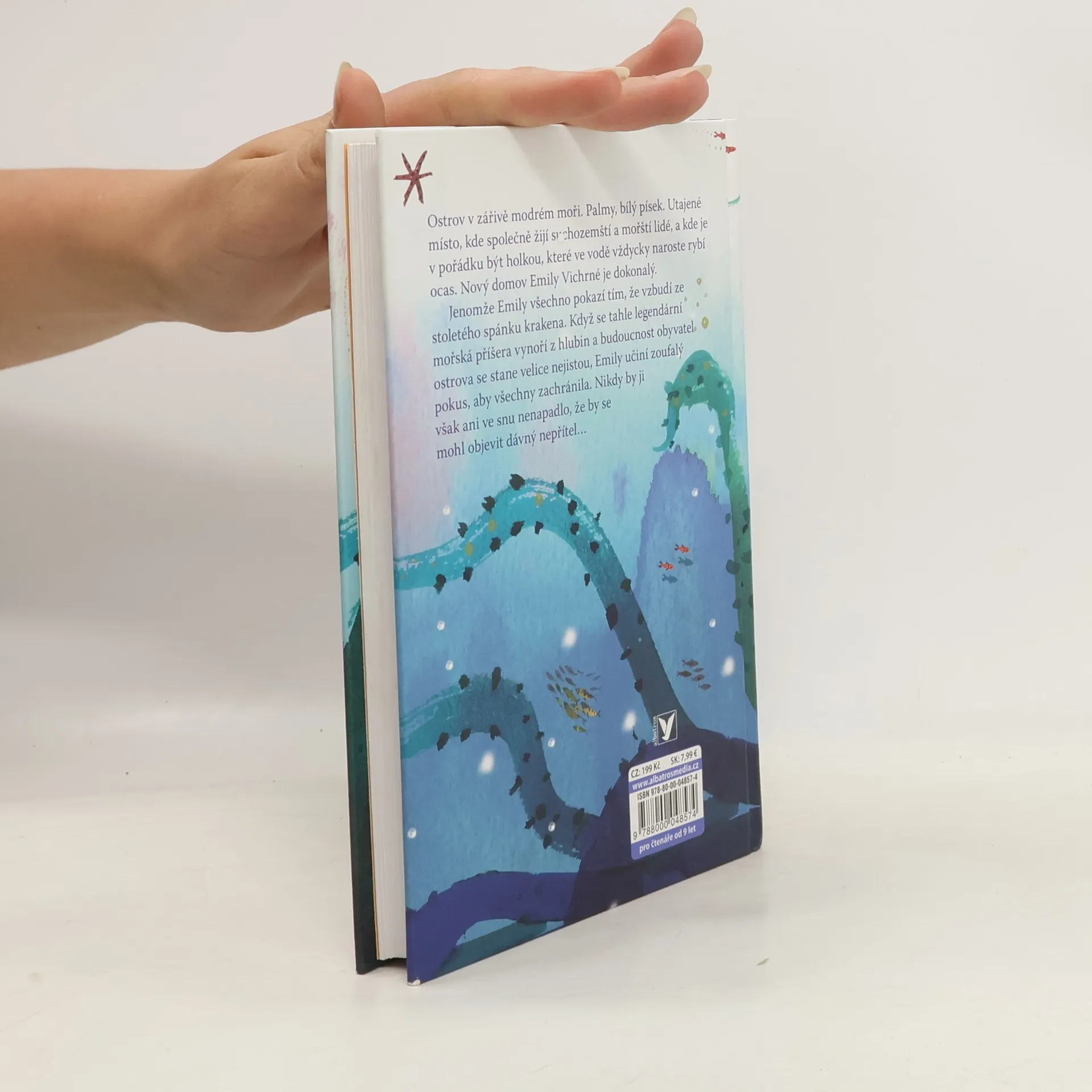 Nový domov Emily Vichrné se zdá být dokonalý. Jenže pod hladinou číhá nebezpečí... Ostrov v zářivě modrém moři. Palmy, bílý písek. Utajené místo, kde společně žijí suchozemští a mořští lidé a kde je v pořádku být holkou, které ve vodě vždycky naroste rybí ocas. Nový domov Emily Vichrné je dokonalý. Jenomže Emily všechno pokazí tím, že vzbudí ze stoletého spánku Krakena. Když se tahle legendární mořská příšera vynoří z hlubin a budoucnost obyvatel ostrova se stane velice nejistou, Emily učiní zoufalý pokus, aby všechny zachránila. Podaří se jí to?