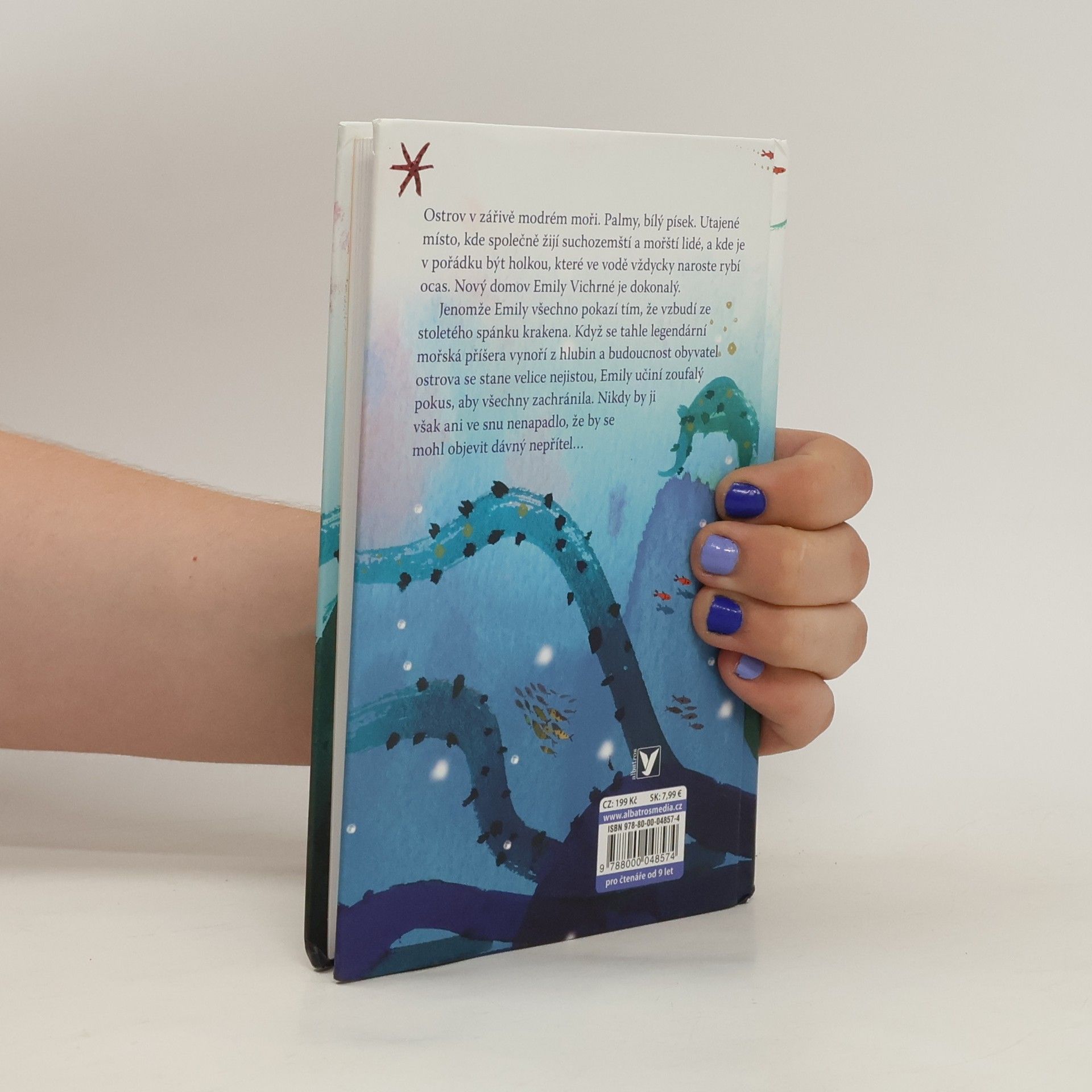 Nový domov Emily Vichrné se zdá být dokonalý. Jenže pod hladinou číhá nebezpečí... Ostrov v zářivě modrém moři. Palmy, bílý písek. Utajené místo, kde společně žijí suchozemští a mořští lidé a kde je v pořádku být holkou, které ve vodě vždycky naroste rybí ocas. Nový domov Emily Vichrné je dokonalý. Jenomže Emily všechno pokazí tím, že vzbudí ze stoletého spánku Krakena. Když se tahle legendární mořská příšera vynoří z hlubin a budoucnost obyvatel ostrova se stane velice nejistou, Emily učiní zoufalý pokus, aby všechny zachránila. Podaří se jí to?