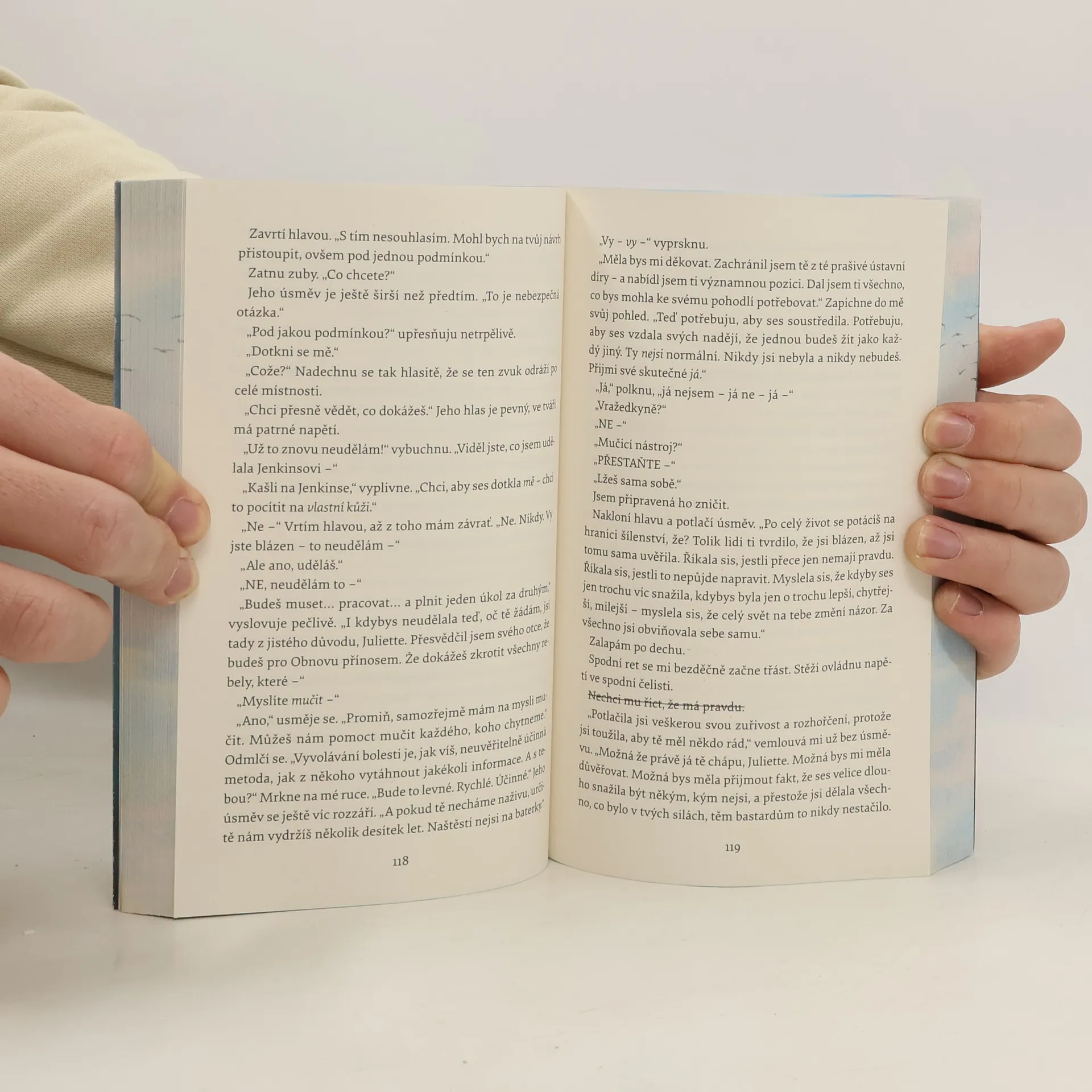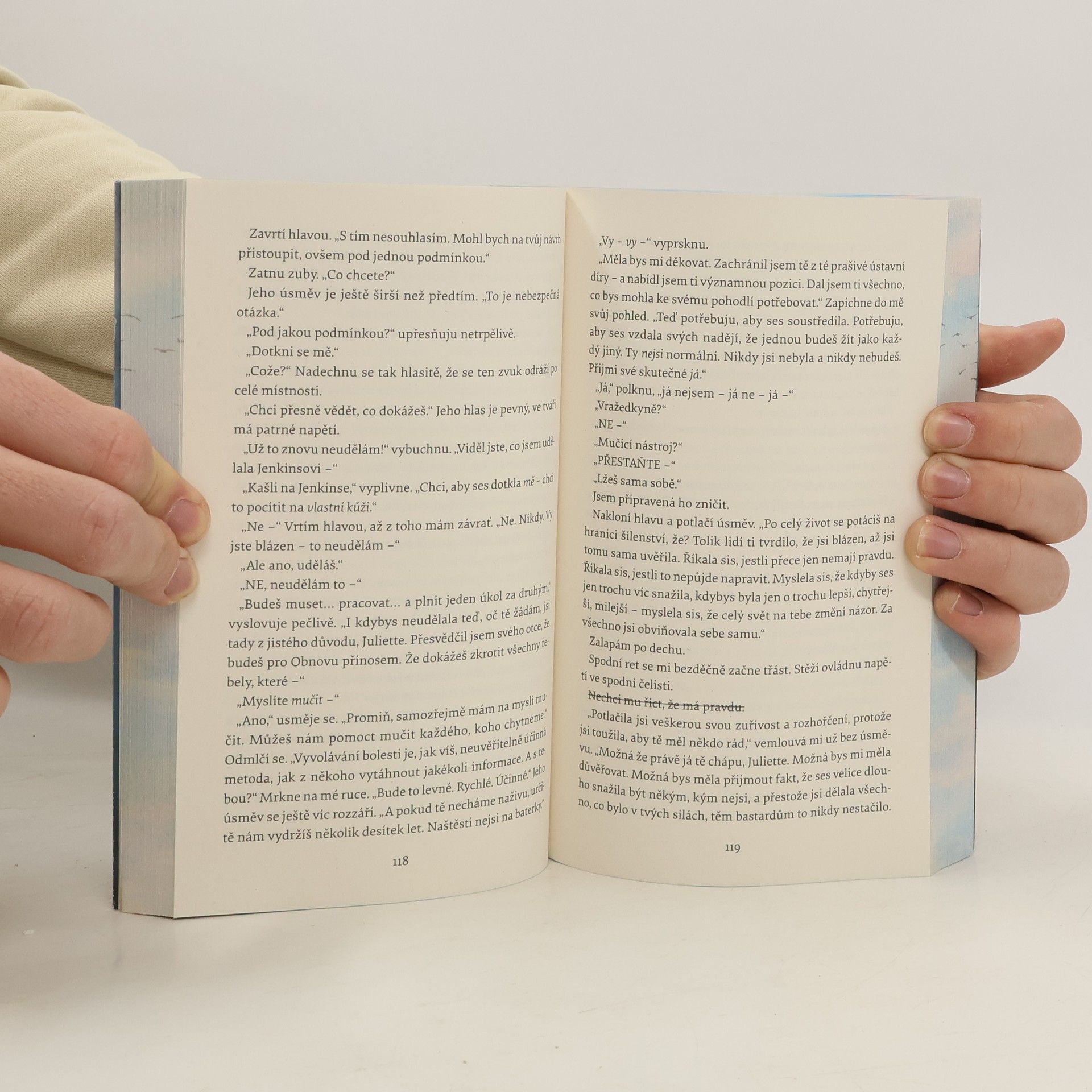 Juliette se nikoho nedotkla už 264 dní. A z dobrého důvodu – její dotyk je totiž smrtící. Ačkoliv nikomu neublížila úmyslně, musí nyní trávit svůj život v cele. Nikdo totiž nemá čas řešit sedmnáctiletou dívku s anomální schopností, svět se potýká s většími problémy – lidé umírají na vážné nemoci, jídlo je nedostupné, ptáci už nelétají a mraky mají zvláštní barvu. Když ovšem Obnovu napadne, že by se Juliette dala použít jako zbraň, musí si vybrat: zda se jí stane, nebo bude bojovat. Doporučený věk 13+