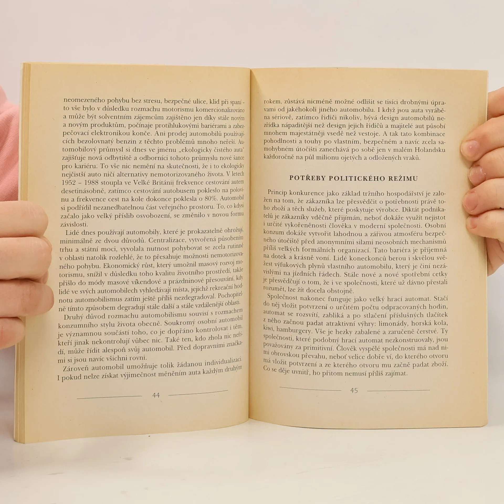 Kniha se zabývá společenskými souvislostmi ekologické krize s důrazem na oblast politiky a ekonomiky. Analyzuje patologické rysy konzumní společnosti, která výrazně omezuje naše šance přejít k trvale udržitelným životním způsobům. V závěru se dotýká jednoho z předpokladů tohoto přechodu: mocenské a ekonomické decentralizace.