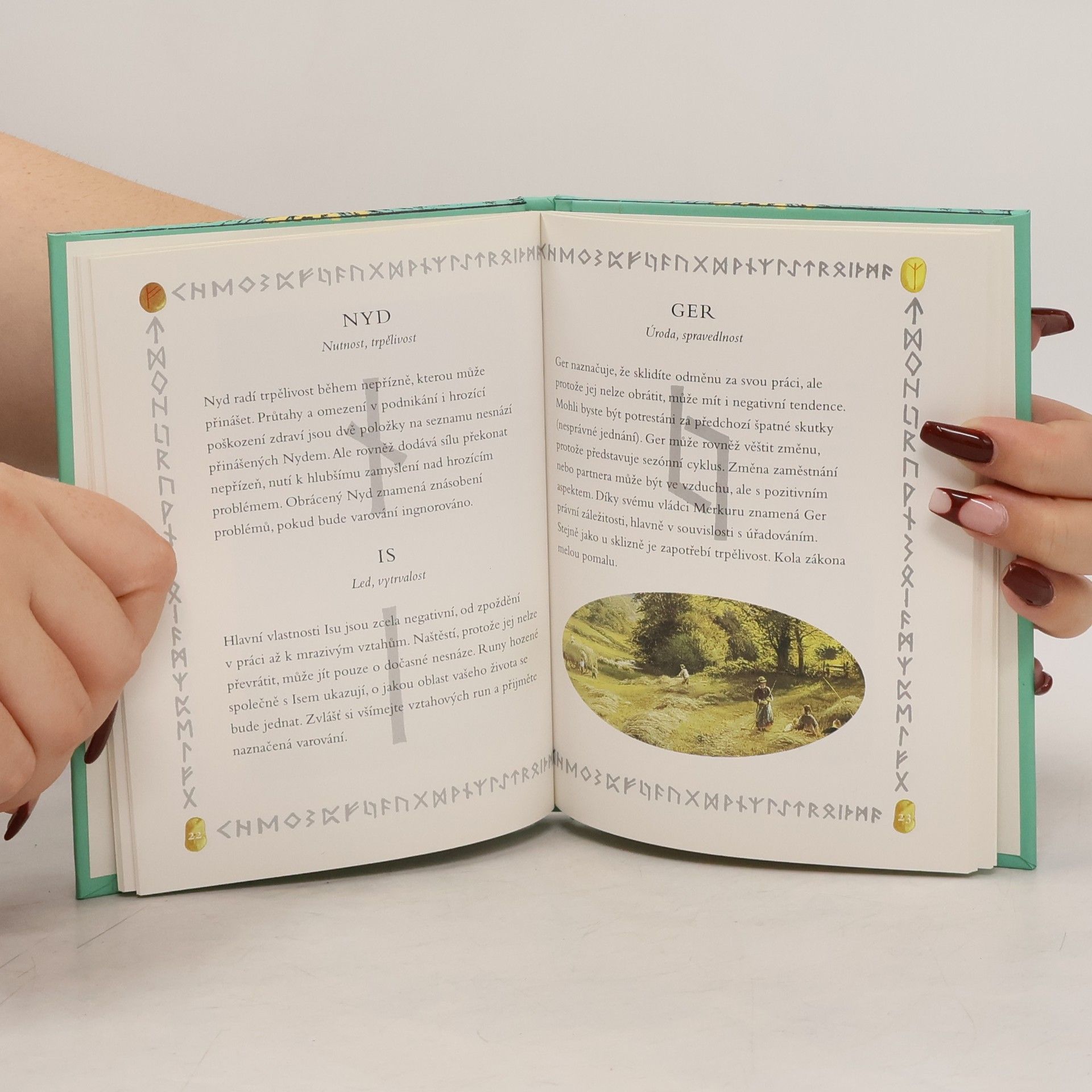 Runy - dávná moudrost pro nový věk - tajemství kamenů. Stručné seznámení se 24 symboly základní runové abecedy je zároveň i výkladem o germánských bozích a s nimi souvisících legendách a představách o uspořádání světa. Krátce jsou zmíněny i způsoby věštby a vztahy jednotlivých run k živé i neživé přírodě. Knížka je bohatě ilustrována.
